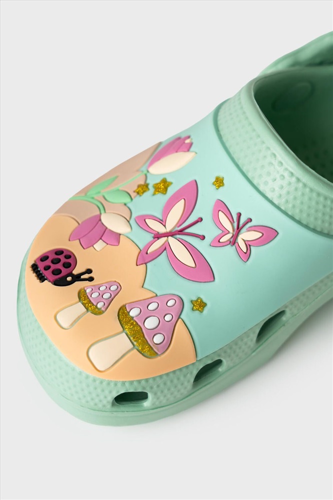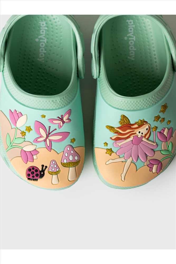 Сабо детские для девочки. Сабо из облегченного и прочного ЭВА. Материал хорошо моется. Объемный рисунок на правой и левой полупарах рассказывают нам целую историю из мира фей. Форма модели учитывает эргономику стопы. Модель имеет перекидной ремешок для лучшей фиксации обуви на ноге. Благодаря вентиляционным отверстиям сабо проветриваются, ноги ребенка дышат и не потеют. *Размер на подошве может отличаться от этикетки. Сверяйтесь с информацией на этикетке.