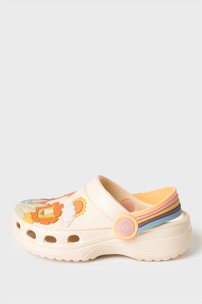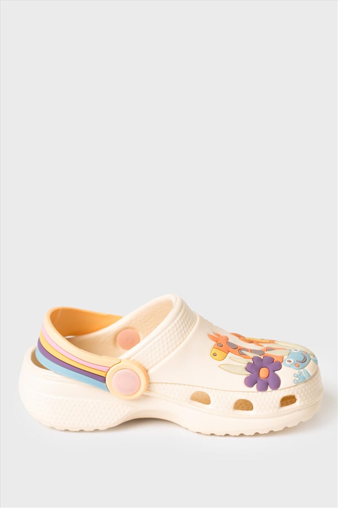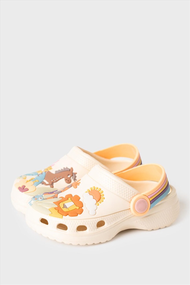 ID товара: 1239994 Состав: 100% ЭВА/100%ПВХ Сезон: Весна/Лето Сабо детские для девочки. Сабо из облегченного и прочного ЭВА. Материал хорошо моется. Объемный рисунок на правой и левой полупарах рассказывают нам целую историю из мира животных. Форма модели учитывает эргономику стопы. Модель имеет перекидной ремешок для лучшей фиксации обуви на ноге. Благодаря вентиляционным отверстиям сабо проветриваются, ноги ребенка дышат и не потеют. *Размер на подошве может отличаться от этикетки. Сверяйтесь с информацией на этикетке. Комментарии к товару