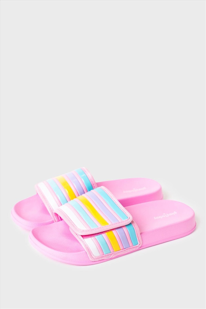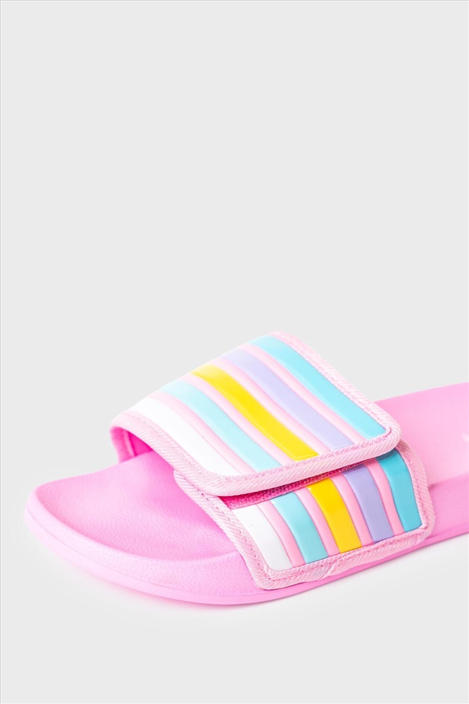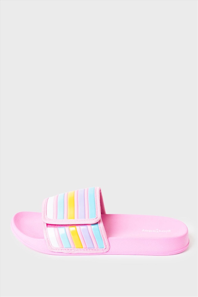 Шлепанцы для девочки из ПВХ. Стелька легко моется. Подошва из облегченного ЭВА. Модель очень удобная, так как верх регулируется с помощью липучки на любой подъем. *Размер на подошве может отличаться от этикетки. Сверяйтесь с информацией на этикетке.