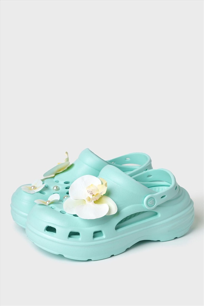 Сабо женские на высокой подошве. Модель выполнена из облегченного и прочного ЭВА. Материал хорошо моется. Форма модели учитывает эргономику стопы. Оригинальность модели придают большие съемные цветы-джибицы. Модель имеет перекидной ремешок фиксации ноги. *Размер на подошве может отличаться от этикетки. Сверяйтесь с информацией на этикетке.