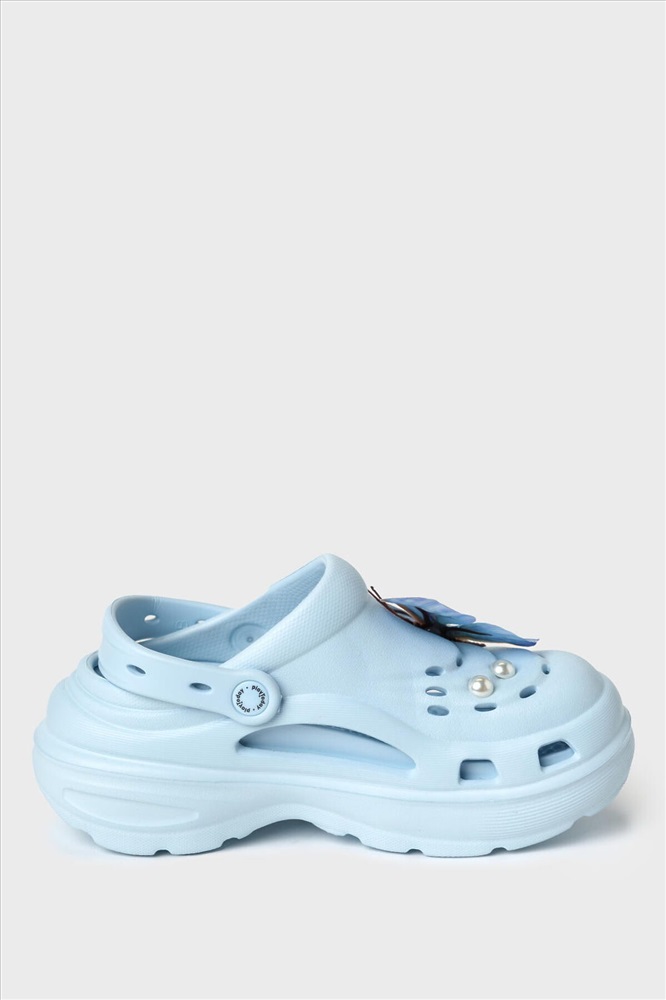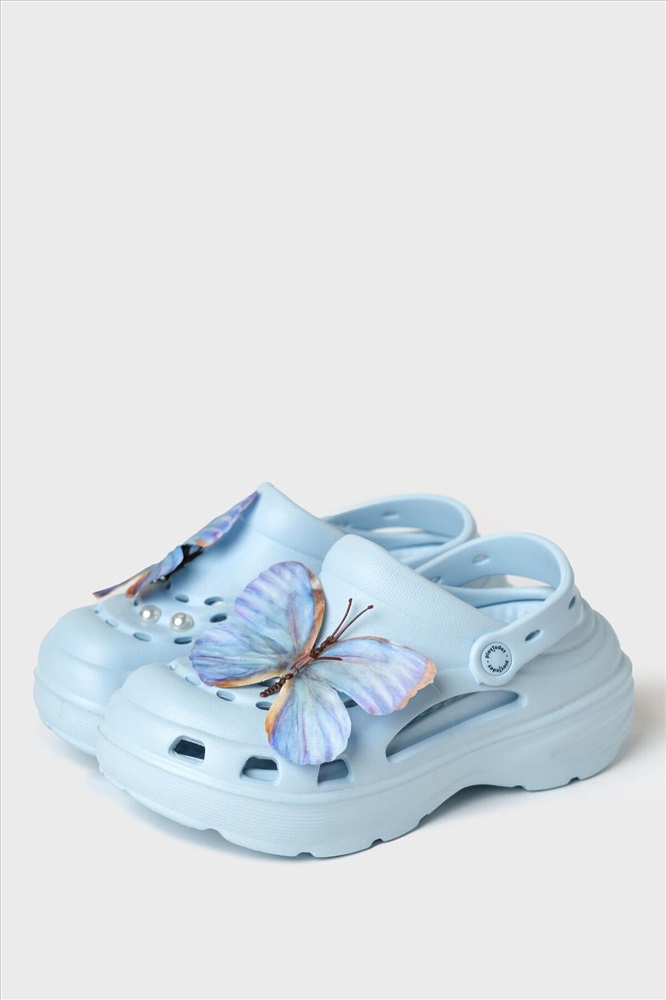 Сабо для девочки-подростка на высокой подошве. Модель выполнена из облегченного и прочного ЭВА. Материал хорошо моется. Форма модели учитывает эргономику стопы. Оригинальность модели придают большие съемные джибицы-бабочки. Модель имеет перекидной ремешок фиксации ноги. *Размер на подошве может отличаться от этикетки. Сверяйтесь с информацией на этикетке.