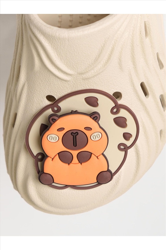 Милые сабо для девочки из облегченного и прочного ЭВА. Материал хорошо моется. Форма модели учитывает эргономику стопы. Модель имеет перекидной ремешок фиксации ноги. Модель декорирована крутящимися патчами со смешным капибара *Размер на подошве может отличаться от этикетки. Сверяйтесь с информацией на этикетке.