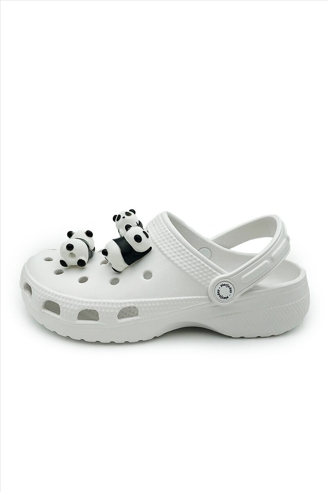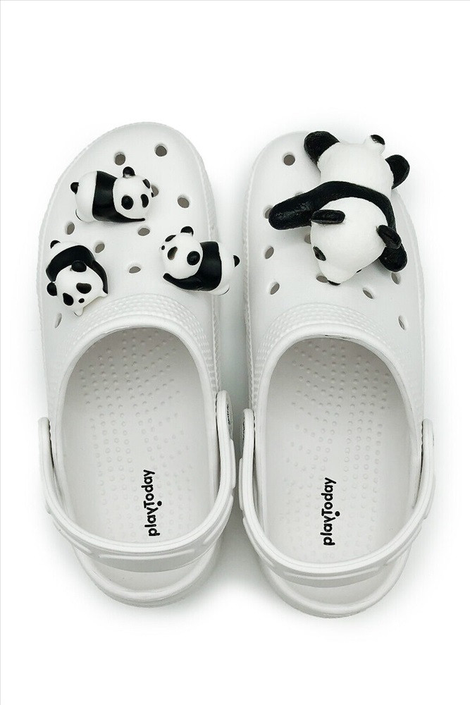ID товара: 1088985 Состав: 100% ЭВА Сезон: Весна/Лето Трендовые сабо для девочки подростка в черно-белой гамме с джибицами-пандами. Шлепанцы выполнены из облегченного и прочного ЭВА. Материал хорошо моется. Форма модели учитывает эргономику стопы. Модель имеет перекидной ремешок для лучшей фиксации обуви на ноге. *Размер на подошве может отличаться от этикетки. Сверяйтесь с информацией на этикетке. Комментарии к товару