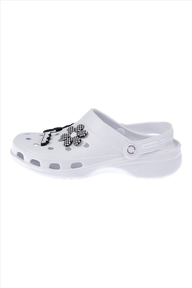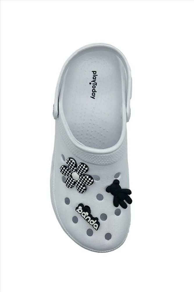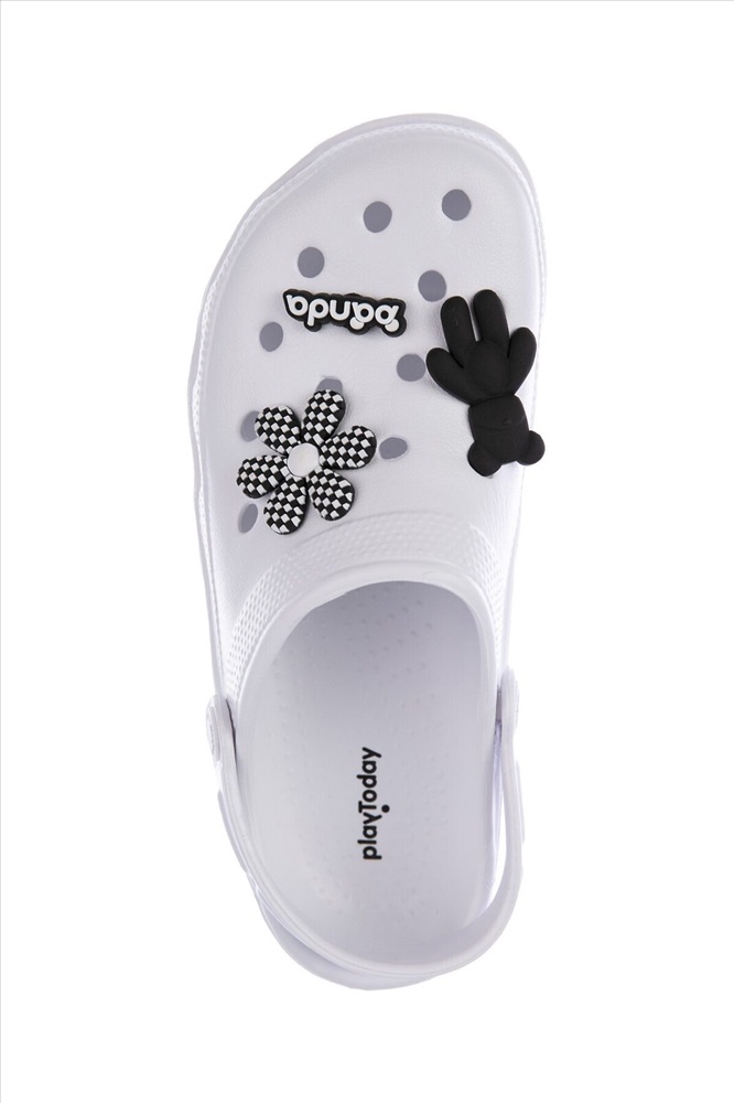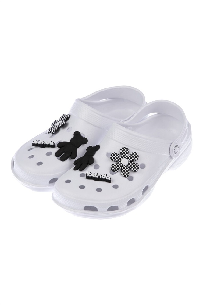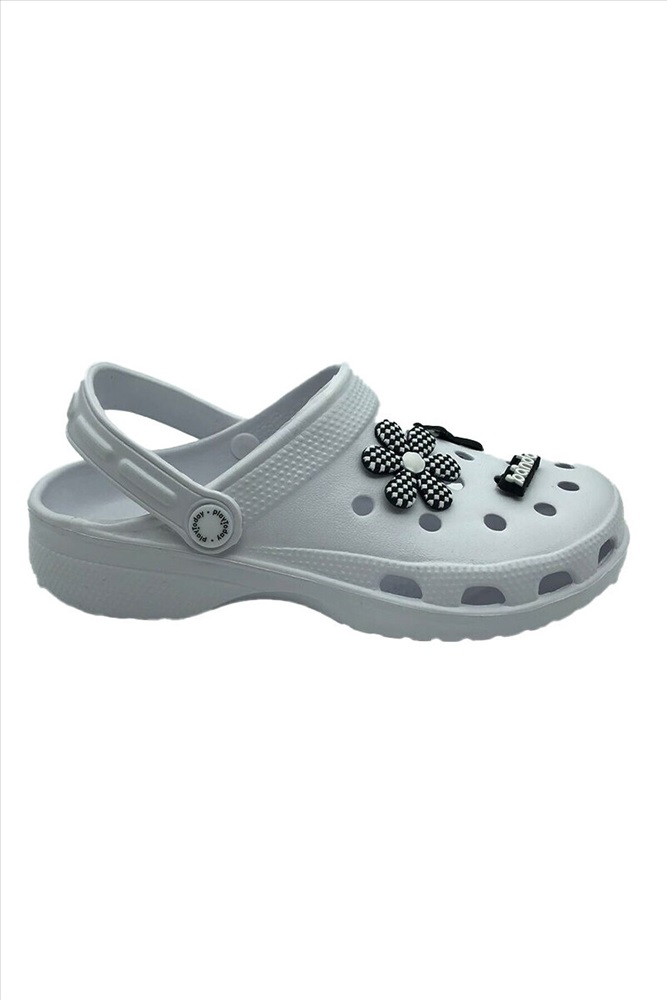 Сабо из облегченного и прочного ЭВА. Материал хорошо моется. Модель украшена объемными джибицами. Форма модели учитывает эргономику стопы. Модель имеет перекидной ремешок для лучшей фиксации обуви на ноге. *Размер на подошве может отличаться от этикетки. Сверяйтесь с информацией на этикетке.