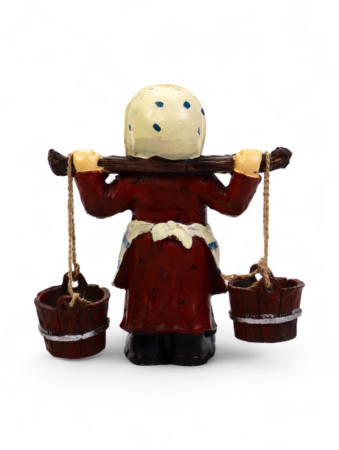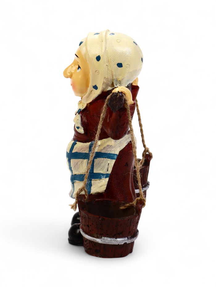 Создание деревенского колорита: фигурка становится смысловым центром в зоне отдыха или огороде. Композицию размещают рядом с колодцем, у входа в беседку или среди грядок — она добавляет пространству уют и индивидуальность. «Бабушка с вёдрами» не требует специального ухода и сохраняет выразительность в любое время года, постепенно становясь органичной частью садового ландшафта. Комментарии к товару