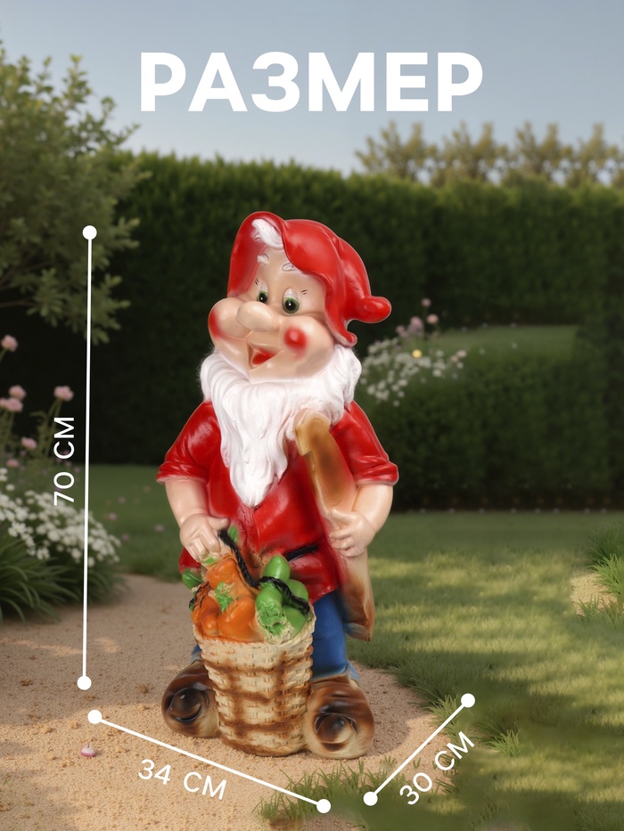 Садовая фигура из гипса «Гном с корзиной овощей», 70×30×34 см, МИКС