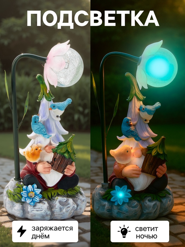 «Гном лесничий» - это очаровательное сезонное украшение для вашего сада. Яркий днем и вечером, он станет милым акцентом в теплый период года. При правильном уходе и сезонном использовании будет радовать вас своим видом долгое время. Идеальный выбор для создания уютной атмосферы в саду!