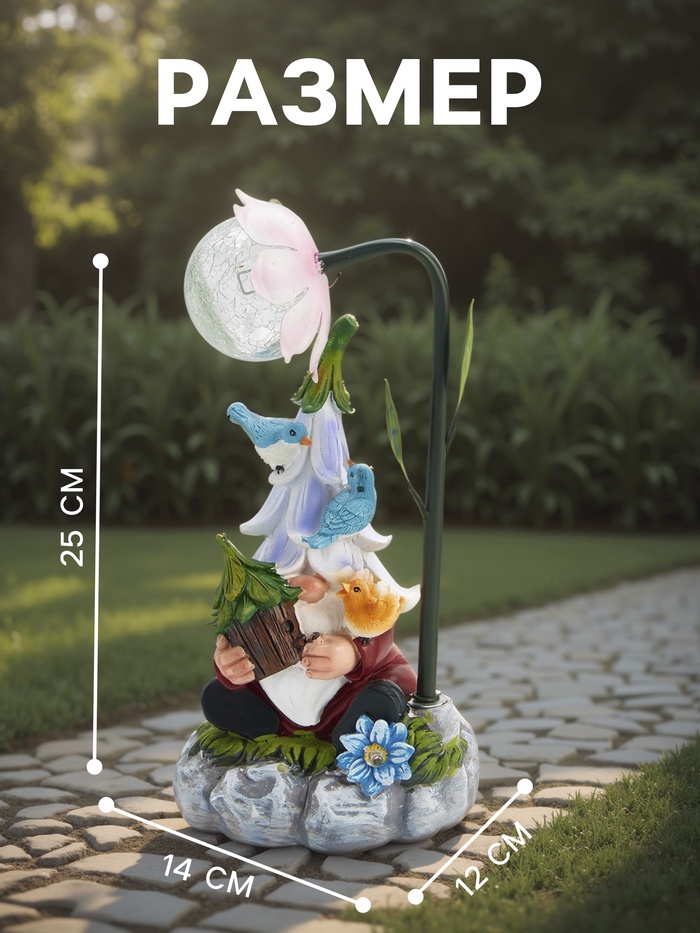 - 25×14×12 см удобны для размещения на клумбах и террасах- Экономия энергии - работает от солнечной батареи без дополнительных расходов