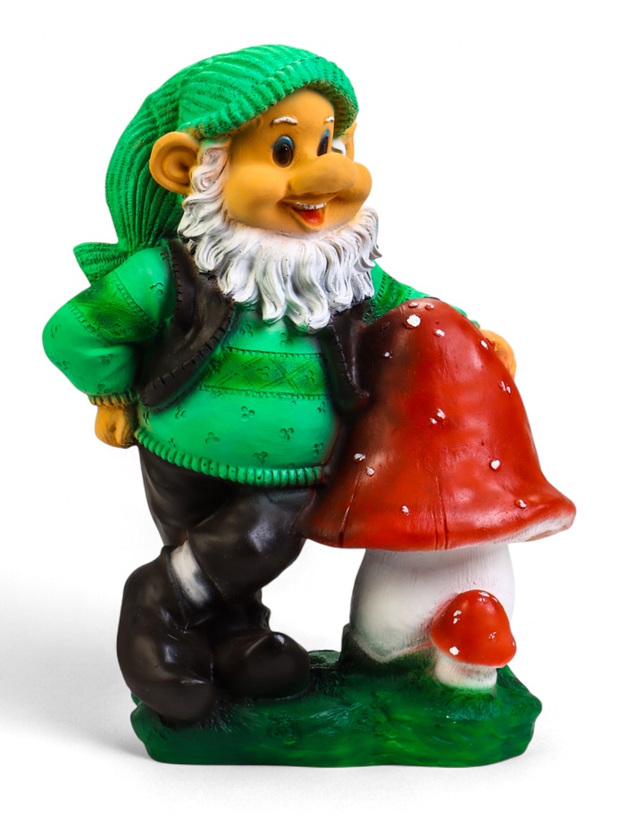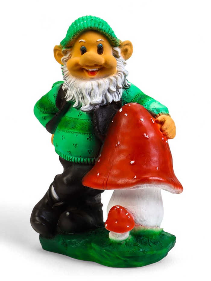 Садовая фигура из полистоуна «Гном с грибом», 40×22×50 см