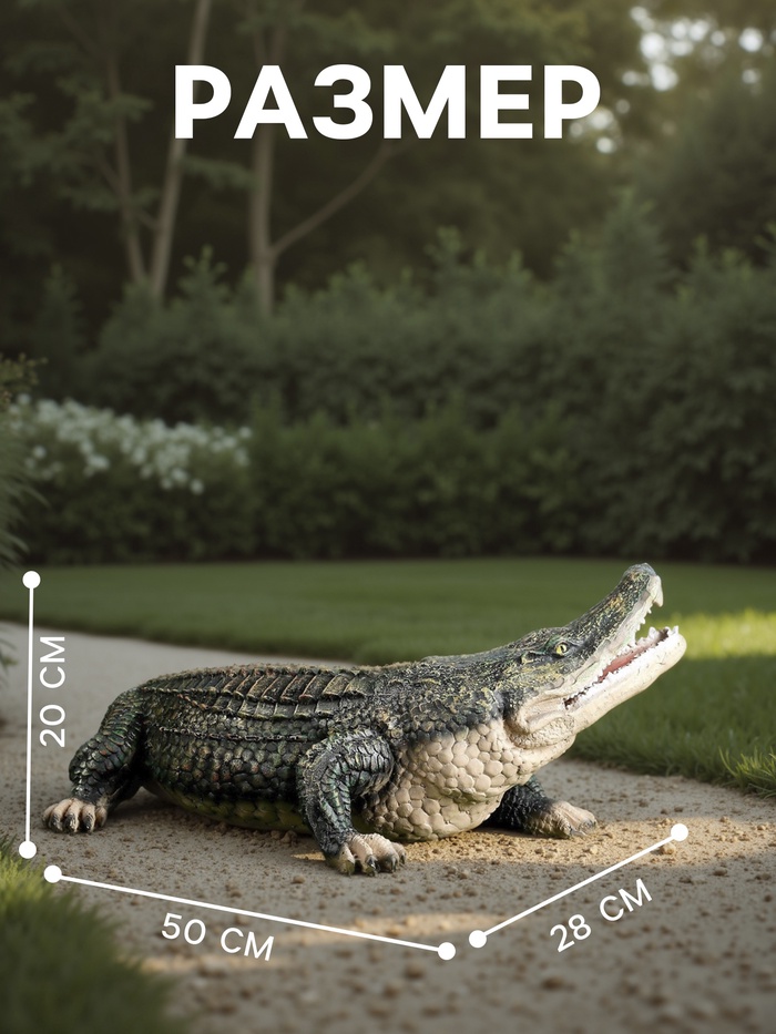 Садовая фигура из полистоуна «Крокодил», 20×50×28 см