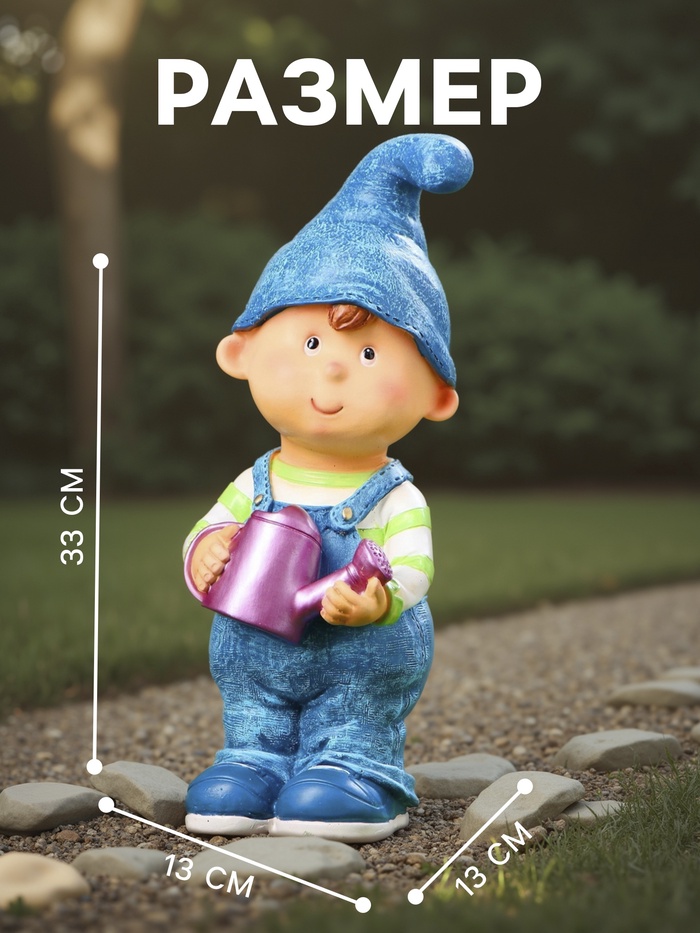 Садовая фигура из полистоуна «Мальчик-гном с лейкой», 33×13×13 см
