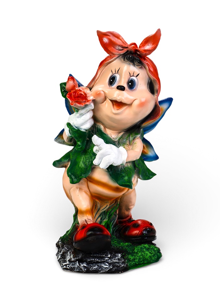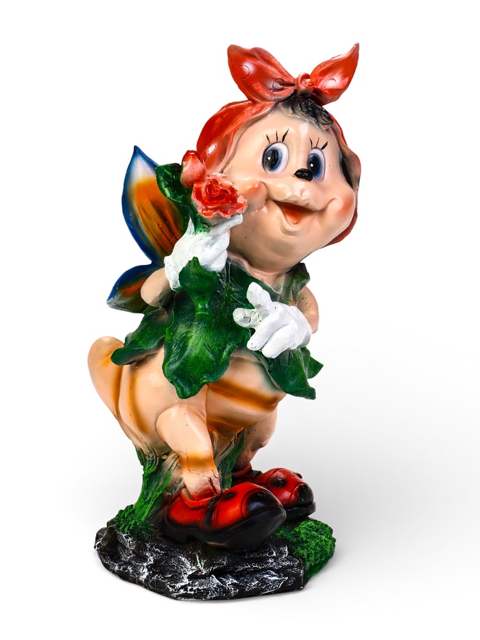 Садовая фигура «Пчёлка в платке» из полистоуна — декоративный акцент для клумбы, газона и входной зоны. Образ с красным платком и цветком в лапке создаёт уют и оживляет пространство участка. Такая фигура гармонично смотрится среди цветов, у дорожек и рядом с садовой мебелью.