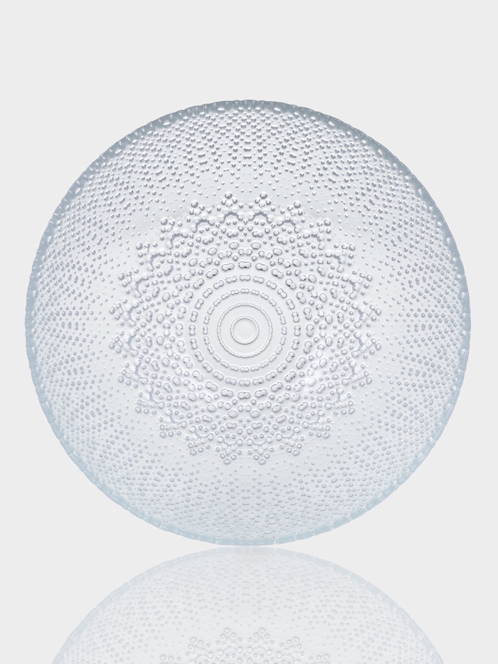 - Прозрачное стекло с рельефом: текстура добавляет тактильный интерес и визуальную глубину, не отвлекая от подачи блюда.