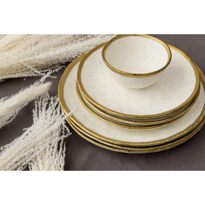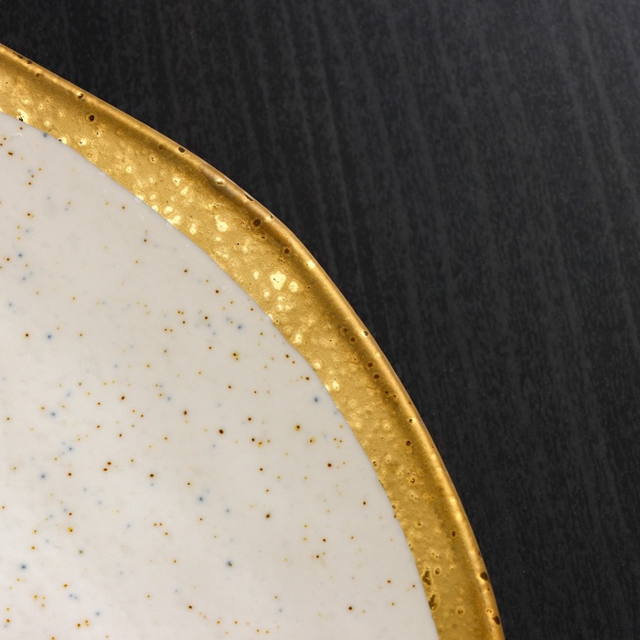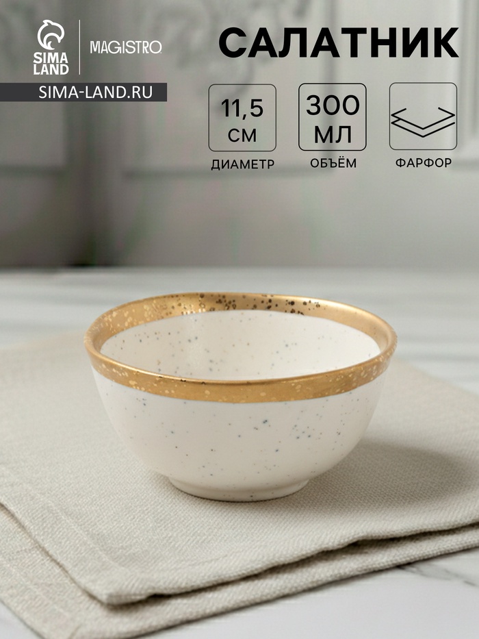 Габариты: 11,5 x 11,5 x 5,5 Страна: Китай В боксе: 54 шт Состав: Фарфор Материалы: фарфор Фасовка: по 1 шт Индивидуальная упаковка: Без упаковки Габариты товара: 11,5 см × 11,5 см × 5,5 см Сертификат: СТР Набор: Нет Цвет: Белый Диаметр, см: 11,5 Объём, л: 0,3 Объём, мл: 300 Тематика: Полоски, полоса, В крапинку Рисунок: Да Крышка: Нет Материал: Фарфор Вид тарелки: Глубокая Можно мыть в посудомоечной машине: Нет Можно использовать в СВЧ-печи: Нет Текстура: Гладкая Особенности: С золотой отводкой Матовая поверхность: Да Для горячего: Да Посуда серии Magistro Poursephona — это современная фарфоровая посуда. В оформлении серии превалируют два цвета – бежевый оттенок фарфора и роскошное золото в виде широкой окантовки предметов. Идеально подходит как для формального обеда, так и для торжеств по особым случаям. Лаконичные формы, золотая окантовка, разноцветные вкрапления придают изделиям из фарфора одновременно необычный и современный вид. Уход: Нельзя использовать в микроволновой печи. Не рекомендуется мыть в посудомоечной машине. ДополнительноМатовая поверхность посуды с золотой отводкой требует деликатного обращения. Нельзя использовать агрессивные чистящие средства и абразивные губки, а также скоблить металлическими приборами по изделию во избежание порчи покрытия. Комментарии к товару