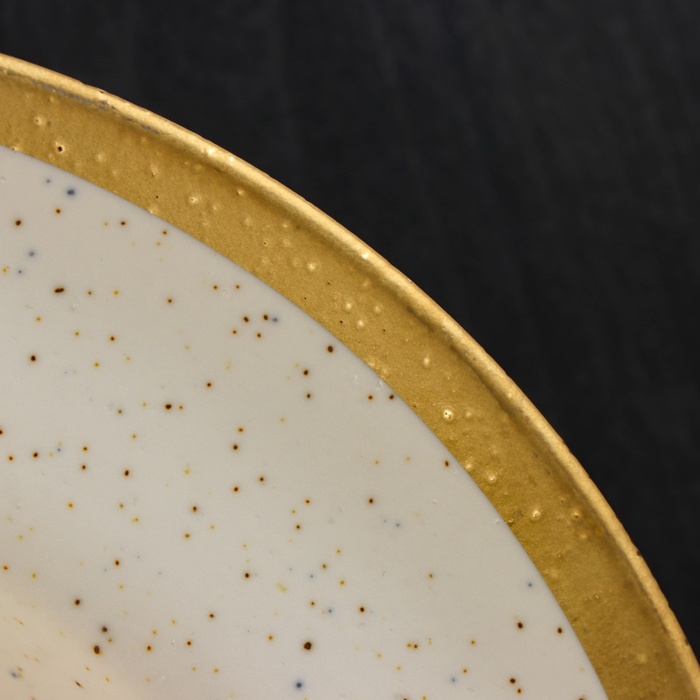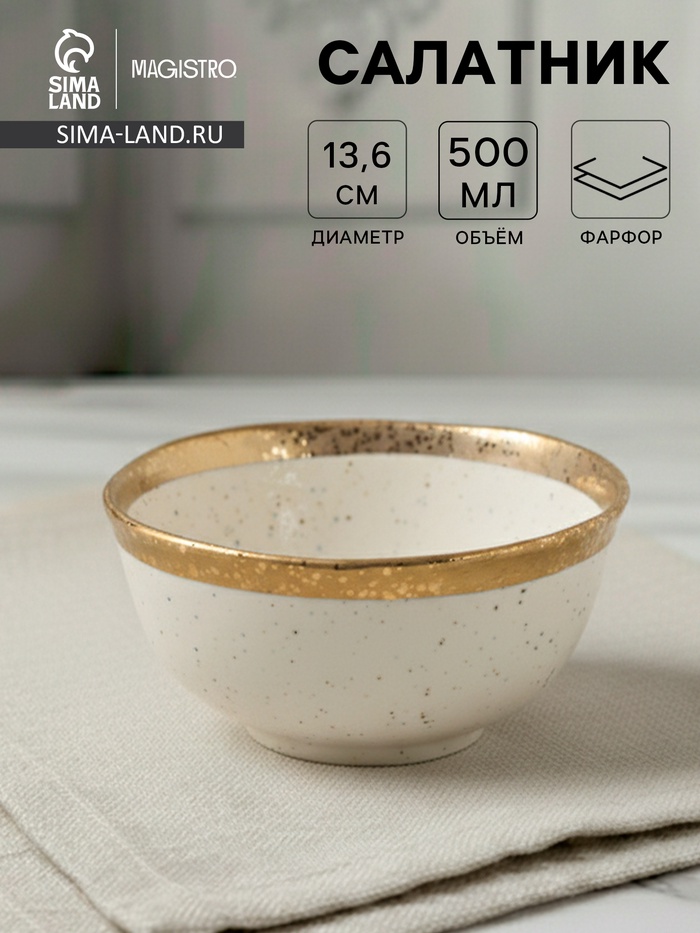Габариты: 14 x 14 x 6,5 Доставка: Платная Страна: Китай В боксе: 36 шт Состав: Фарфор Материалы: фарфор Фасовка: по 1 шт Индивидуальная упаковка: Без упаковки Габариты товара: 13,6 см × 13,6 см × 7 см Сертификат: СТР Набор: Нет Цвет: Белый Диаметр, см: 13,6 Объём, л: 0,5 Объём, мл: 500 Тематика: Полоски, полоса, В крапинку Рисунок: Да Крышка: Нет Материал: Фарфор Вид тарелки: Глубокая Можно мыть в посудомоечной машине: Нет Можно использовать в СВЧ-печи: Нет Текстура: Гладкая Особенности: С золотой отводкой Матовая поверхность: Да Для горячего: Да Посуда серии Magistro Poursephona — это современная фарфоровая посуда. В оформлении серии превалируют два цвета – бежевый оттенок фарфора и роскошное золото в виде широкой окантовки предметов. Идеально подходит как для формального обеда, так и для торжеств по особым случаям. Лаконичные формы, золотая окантовка, разноцветные вкрапления придают изделиям из фарфора одновременно необычный и современный вид. Уход: Нельзя использовать в микроволновой печи. Не рекомендуется мыть в посудомоечной машине. ДополнительноМатовая поверхность посуды с золотой отводкой требует деликатного обращения. Нельзя использовать агрессивные чистящие средства и абразивные губки, а также скоблить металлическими приборами по изделию во избежание порчи покрытия. Комментарии к товару