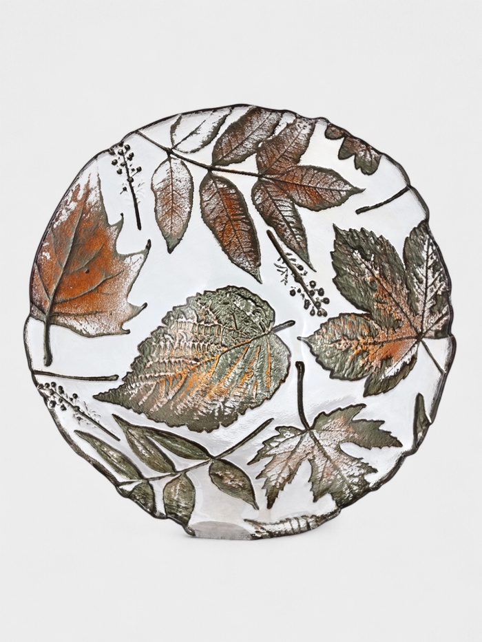 Прозрачное стекло с растительным узором — выбор тех, кто ценит сезонность, фактуру и естественные мотивы. Это не просто тарелка — это элемент настроения на столе.