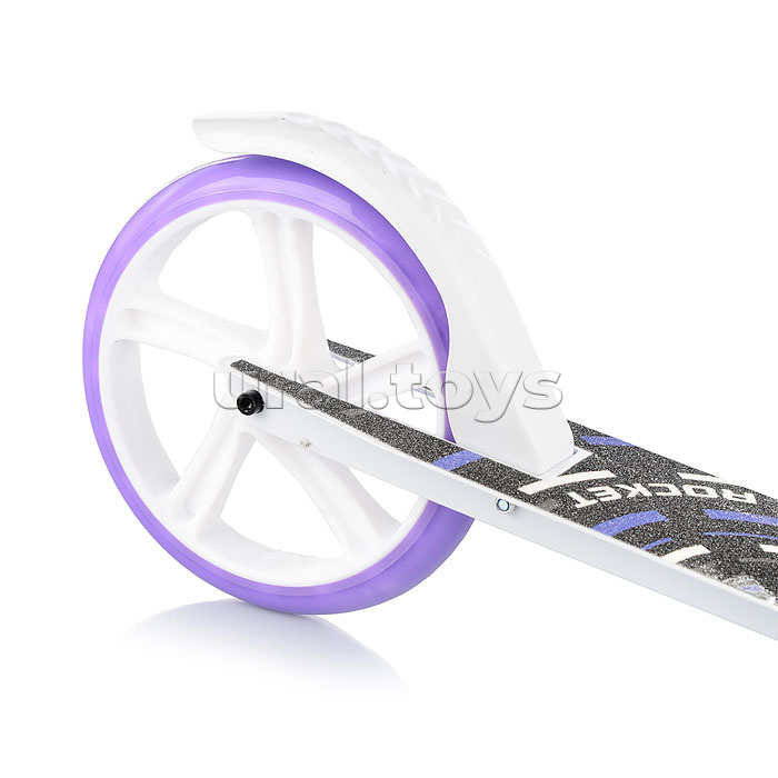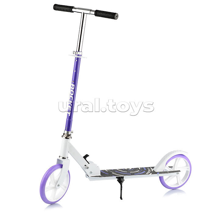 Тип самоката: Самокат 2-х колесный Код: 358253 Страна производитель: Китай Размеры упаковки: 77 x 12 x 27 см Количество в коробке: 6 Самокат ROCKET отлично подойдет для начинающих райдеров. Рекомендуемый возраст: 9 - 14 лет. Рекомендуемый рост: 140 - 170 см. Диаметр колес: 200 мм. Высота модели (регулируемая): 930, 980, 1030 мм. Высота руля от зажима: 580, 630, 680 мм. Ширина руля: 355 мм. Длина модели: 880 мм Материал самоката: высокоуглеродистая сталь. Материал колес: полиуретан. Материал дисков: пластик. Длина деки: 520 мм. Ширина деки: 105 мм. Тип тормоза: задний наступающий. Тип хомута: 1 болтовый. Класс подшипников: ABEC 7. Покрытие деки: нескользящая шкурка. Клиренс: 110 мм. Руль стальной Т- образный. Складывающиеся ручки руля. Для удобства транспортировки рулевая стойка складывается к деке. На деке установлена складывающаяся подножка. Вес модели: 3900 г. Максимальная нагрузка: 100 кг. Комментарии к товару