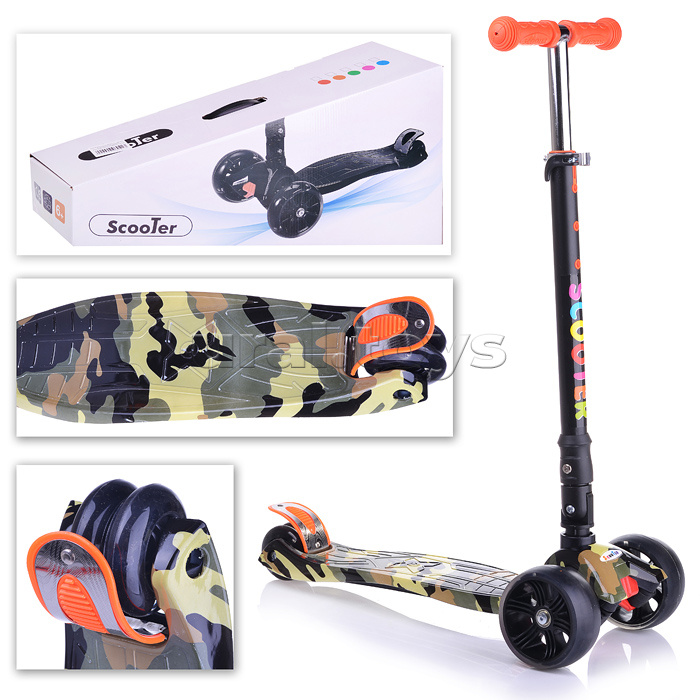 • Размеры самоката: 56 х 13 х 63 см. • 2 колеса на передней оси. • При наклоне рулевой ручки, передние колёса поворачиваются. • Сдвоенное заднее колесо. • Резиновые колёса (светятся при движении). • Диаметр передних колёс: 11.5 см. • Ширина передних колёс: 5 см. • Диаметр задних: 8 см. • Задний ножной тормоз. • Регулируемая по высоте рулевая стойка (61-90 см.) • Ширина рулевой ручки: 25 см. • Алюминиевая рама. • Основание из пластика. • Максимальная нагрузка: 60 кг. • Соответствует требованиям безопасности и стандартам качества продукции. • Рекомендованый возраст: с 3-х лет.
