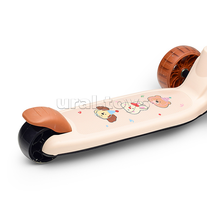 Код: 478665 Штрихкод: 6904110718012 Страна производитель: Китай Размеры упаковки: 56 x 16 x 29 см Количество в коробке: 6 • Съёмная рулевая стойка. • Размеры самоката: 52 х 26 х 65 см. • Регулируемая по высоте рулевая стойка: 65, 71, 78 см. • Металлическая рулевая стойка. • Задний ножной тормоз. • Колёса из полиуретана. • Диаметр передних колёс: 12 см. • Ширина передних колёс: 4 см. • Диаметр заднего колеса: 8 см. • Ширина заднего колеса: 4.5 см. • Разноцветная подсветка колес во время движения. • Без амортизатора. • Полезная длина деки: 28 см. • Ширина деки: 12 см. • Ширина руля: 28 см. • Резиновые грипсы. • Клиренс: 4 см. • Максимальная нагрузка: 50 кг. • Рекомендуемый возраст: 3 – 8 лет. • Соответствует требованиям безопасности продукции. • Класс подшипников: ABEC-9 (608ZZ) • Вес самоката: 2.1 кг. Комментарии к товару