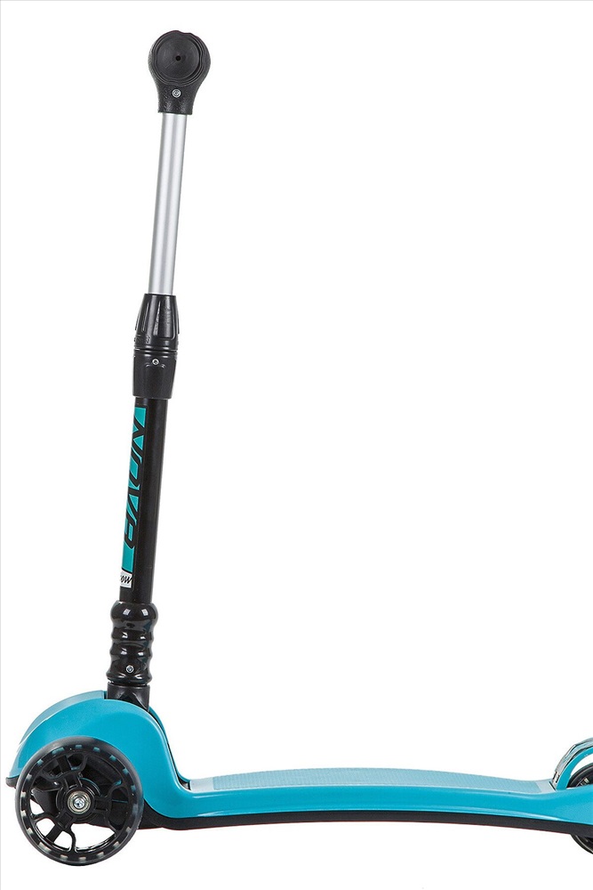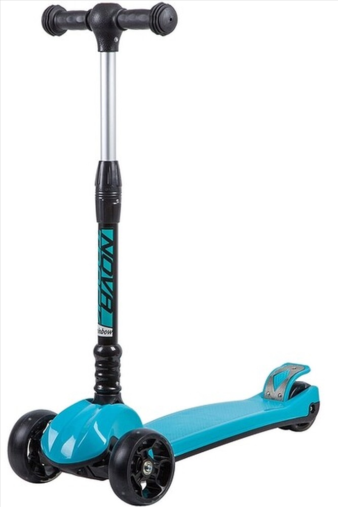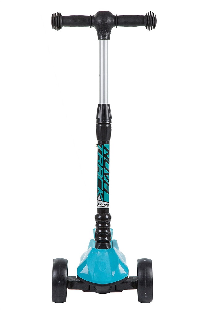 Самокат-кикборд Novatrack RainBow, подростковый, складной, широкие свет.колеса PU 120*90,ватер стикер, бирюзовый; Рекомендуемый возраст 3+; Максимальная нагрузка 50 кн Размеры (см): Длина - 39 Ширина - 61 Высота - 45