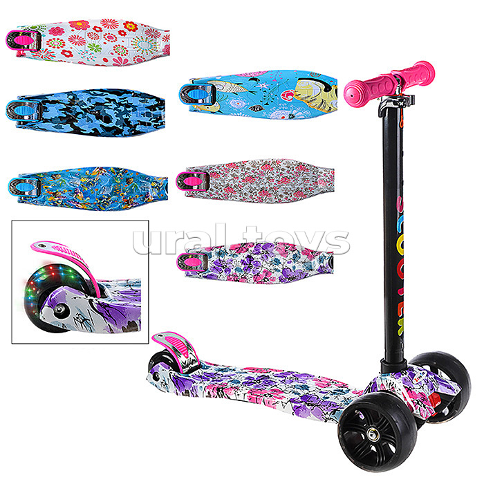 • ВНИМАНИЕ! Уцененный товар обмену и возврату не подлежит. • Самокат трёхколёсный, разборный. • Размеры самоката: 57х28х76 см. • Регулируемая по высоте рулевая стойка: 76, 80, 84 см. • При наклоне рулевой ручки, поворачиваются передние колёса. • Задний ножной тормоз. • Колёса из полиуретана (задние колёса светятся во время движения). • Максимальная нагрузка: 40 кг. • Диаметр передних колёс: 12 см. • Ширина передних колёс: 5 см. • Сдвоенное заднее колесо. • Диаметр заднего колеса: 8 см. • Ширина рулевой ручки: 24 см. • Соответствует требованиям безопасности продукции. • Для детей от 3-х лет. • Класс подшипников: ABEC-7 (608ZZ) • Без амортизатора. • Пластиковая рама. • Основание из алюминия. • Максимальная высота руля: 84 см.
