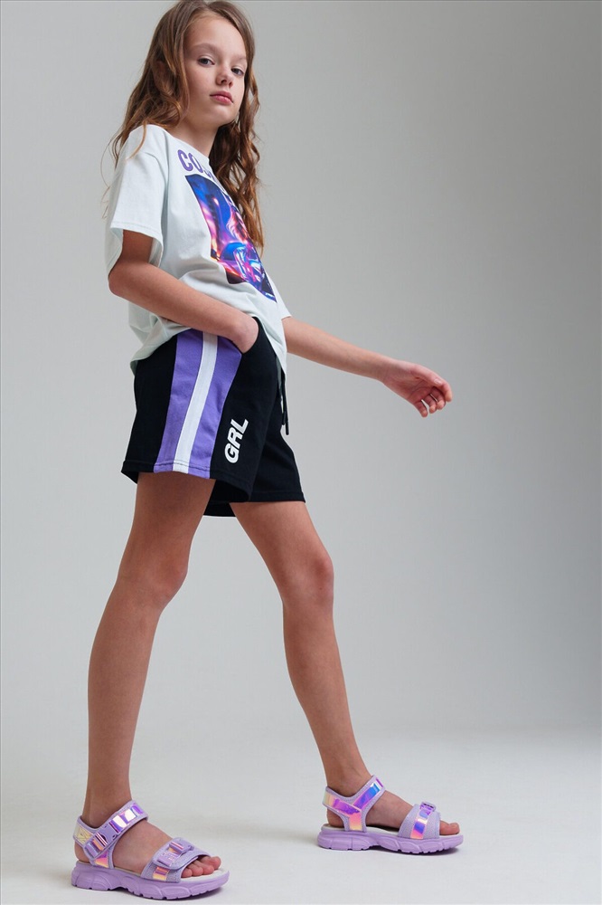 Сандалии спортивного стиля для девочки подростка. Босоножки выполнены из дышащего текстиля и зеркальной искусственной кожи. Удобные ремни с липучками позволяют регулировать обувь на любой подъем. Текстильная подкладка c высоким содержанием хлопка 80% обладает высокой гигроскопичностью. Стелька из свиной кожи с анатомическим элементом поддерживает свод стопы в правильном положении. Модель имеет гибкую и легкую подошва из ЭВА с противоскользящим протектором.