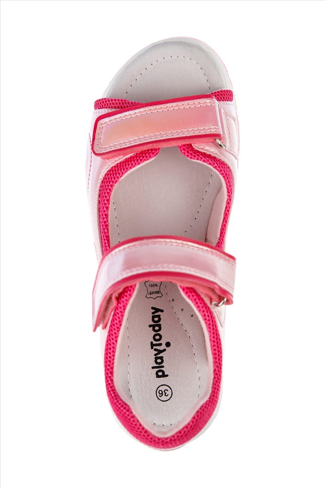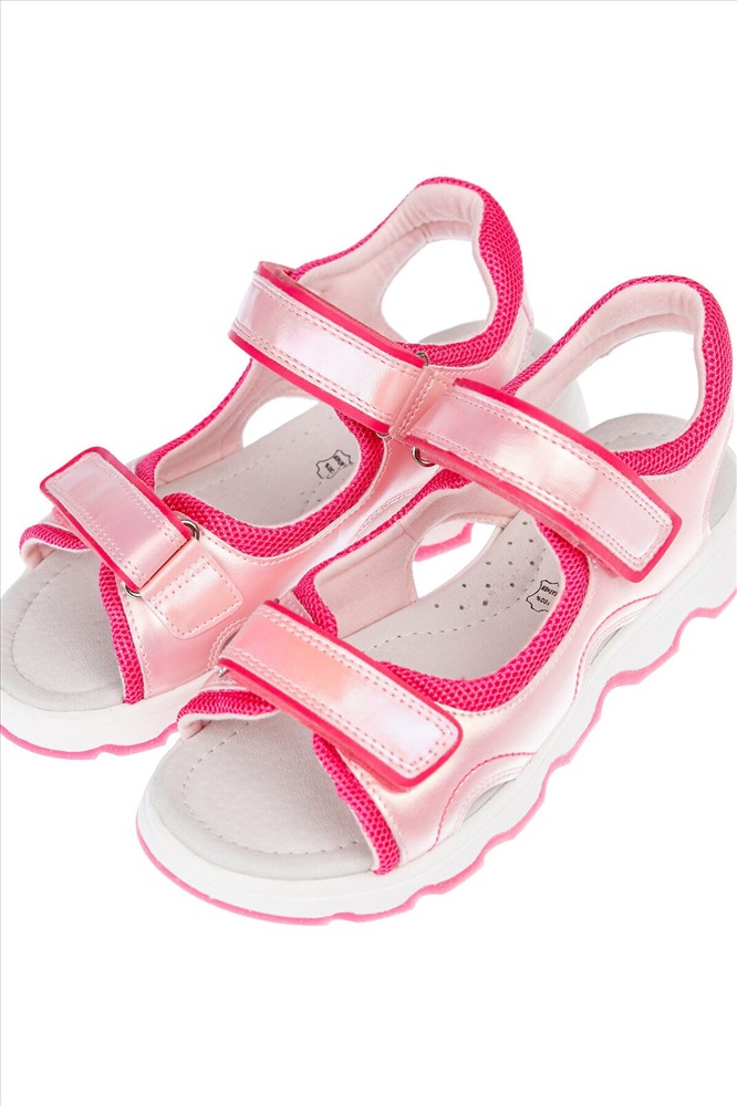 Сандалии из перламутровой искусственной кожи. Удобные ремни с липучками позволяют регулировать объем. Подкладка выполнена из текстиля с высоким содержанием хлопка. Стелька выполнены из натуральной кожи и имеет анатомический элемент для поддержания свода стопы. Наличие мягкого канта сзади создает дополнительный комфорт в носке. Подошва из терморезины очень гибкая, легкая и не скользит.