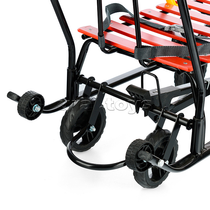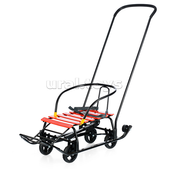 • Комплектность: санки, спинка сиденья, ручка, паспорт и руководство по эксплуатации. • Санки предназначены для перевозки детей по плотному снегу или льду при температуре воздуха до -25 градусов С. • Материалы: Крепкая сварная конструкция из стальных труб. Каркас покрыт порошковой эмалью, устойчивой к низким температурам. Сиденье - окрашенные деревянные рейки. • Преимущества: - широкие полозья 30 мм - дополнительные пластиковые колёса на полозьях - механизм выдвижных колесных шасси - колёса с мягкими шинами из ЭВА - съёмные спинка и ручка - 2 положения ручки - поперечная рейка - ступенчатая подножка - грузоподъёмность: не более 25 кг • Технические характеристики: - Длина (без ручки): 85.5 см - Ширина по спинке: 39 см - Высота спинки на колёсах: 47 см - Высота спинки на полозьях: 39 см - Высота ручки на колесах: 113 см - Высота ручки на полозьях: 105 см - Размер полозьев: 30х15 мм - Ширина по полозьям: 38.5 см - Ширина по колёсам: (задние)24 см/(передние)27 см - Диаметр больших колёс: 12.8 см - Диаметр маленьких пластиковых колес: 6 см - Размер сиденья (ДхШ): 46 х 30 см - Высота сиденья на колёсах: 27.5 см - Высота сиденья на полозьях: 19.5 см - Вес нетто: 5.7 кг • Соответствует требованиям безопасности и стандартам качества продукции. • Для детей до 1 года до 3-х лет.