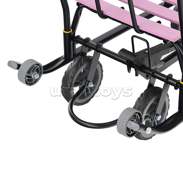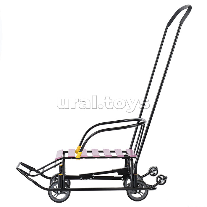 • Комплектность: санки, спинка сиденья, ручка, паспорт и руководство по эксплуатации. • Санки предназначены для перевозки детей по плотному снегу или льду при температуре воздуха до -25 градусов С. • Материалы: Крепкая сварная конструкция из стальных труб. Каркас покрыт порошковой эмалью, устойчивой к низким температурам. Сиденье - окрашенные деревянные рейки. • Преимущества: - широкие полозья 30 мм - дополнительные пластиковые колёса на полозьях - механизм выдвижных колесных шасси - колёса с мягкими шинами из ЭВА - съёмные спинка и ручка - 2 положения ручки - поперечная рейка - ступенчатая подножка - грузоподъёмность на колесах: не более 25 кг • Технические характеристики: - Длина (без ручки): 85.5 см - Ширина по спинке: 39 см - Высота спинки на колёсах: 47 см - Высота спинки на полозьях: 39 см - Высота ручки на колесах: 113 см - Высота ручки на полозьях: 105 см - Размер полозьев: 30х15 мм - Ширина по полозьям: 38.5 см - Ширина по колёсам: (задние)24 см/(передние)27 см - Диаметр больших колёс: 12.8 см - Диаметр маленьких пластиковых колес: 6 см - Размер сиденья (ДхШ): 46 х 30 см - Высота сиденья на колёсах: 27.5 см - Высота сиденья на полозьях: 19.5 см - Вес нетто: 5.7 кг • Соответствует требованиям безопасности и стандартам качества продукции. • Для детей до 1 года до 3-х лет.