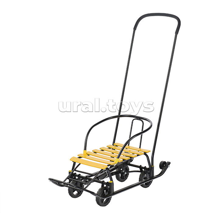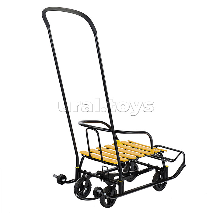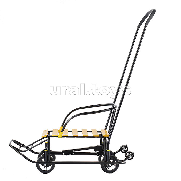 Код: 335894 Страна производитель: Россия Размеры упаковки: 110 x 44 x 24.5 см Количество в коробке: 1 • Комплектность: санки, спинка сиденья, ручка, паспорт и руководство по эксплуатации. • Санки предназначены для перевозки детей по плотному снегу или льду при температуре воздуха до -25 градусов С. • Материалы: Крепкая сварная конструкция из стальных труб. Каркас покрыт порошковой эмалью, устойчивой к низким температурам. Сиденье - окрашенные деревянные рейки. • Преимущества: - широкие полозья 30 мм - дополнительные пластиковые колёса на полозьях - механизм выдвижных колесных шасси - колёса с мягкими шинами из ЭВА - съёмные спинка и ручка - 2 положения ручки - поперечная рейка - ступенчатая подножка - грузоподъёмность: не более 25 кг • Технические характеристики: - Длина (без ручки): 85.5 см - Ширина по спинке: 39 см - Высота спинки на колёсах: 47 см - Высота спинки на полозьях: 39 см - Высота ручки на колесах: 113 см - Высота ручки на полозьях: 105 см - Размер полозьев: 30х15 мм - Ширина по полозьям: 38.5 см - Ширина по колёсам: (задние)24 см/(передние)27 см - Диаметр больших колёс: 12.8 см - Диаметр маленьких пластиковых колес: 6 см - Размер сиденья (ДхШ): 46 х 30 см - Высота сиденья на колёсах: 27.5 см - Высота сиденья на полозьях: 19.5 см - Вес нетто: 5.7 кг • Соответствует требованиям безопасности и стандартам качества продукции. • Для детей до 1 года до 3-х лет. Комментарии к товару