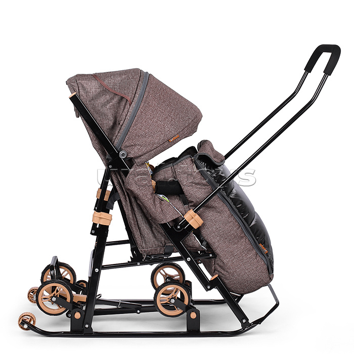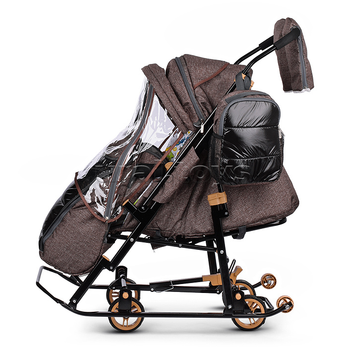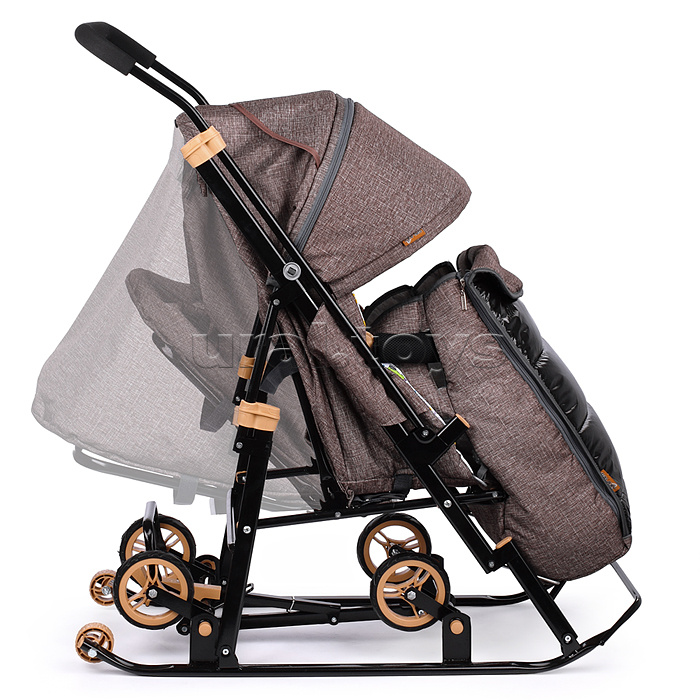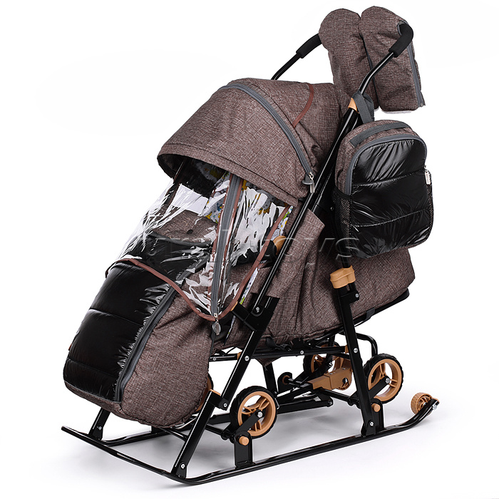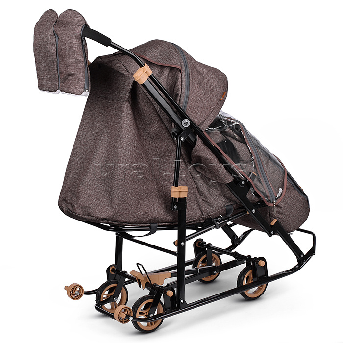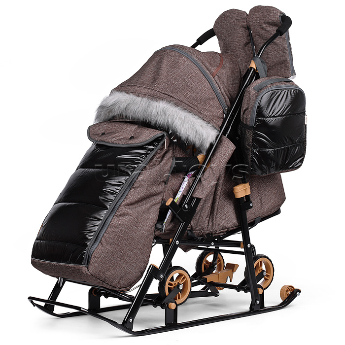 Код: 450280 Штрихкод: 4640198752198 Страна производитель: Россия Размеры упаковки: 110 x 46 x 39 см Количество в коробке: 1 Комплектность: коляска, рюкзак, рукавички, меховой матрасик, бортик безопасности, ветрозащитное стекло, паспорт и руководство по эксплуатации. Особенности: • Крепкая сварная конструкция из стальных труб. • Каркас покрыт порошковой эмалью, устойчивой к низким температурам. • Механизм смены полозьев на колеса (выдвижная колесная база). • Колеса с мягкими шинами из EVA. Диаметр колес - 12.7 см (5"). • Малые колеса (d=6 cм.) на полозьях для удобной транспортировки по твёрдому покрытию. • Для удобства эксплуатации санки оснащены перекидной ручкой. • Мягкий утеплённый чехол из ткани Оксфорд, две молнии по бокам для удобного открывания с обеих сторон. • Положение спинки (до горизонтального) регулируется с помощью фиксатора. • Ремень безопасности - трехточечный. • Съёмный меховой матрасик (размер: 33х68 см.). • Бортик безопасности (съёмный). • Подножку можно установить в горизонтальное положение. • На капюшоне есть смотровое окно из сетки с защитным клапаном. • Ветрозащитное стекло из плотной прозрачной плёнки с двумя молниями по бокам; крепится к капюшону с помощью молнии. • Светоотражающие элементы. • В комплекте рюкзак под ручную кладь и две рукавицы с боковыми молниями. • Длина санок: 96 см. • Ширина по полозьям: 45.5 см. • Ширина по колёсам (передние/задние): 31 см./27.5 см. • Высота с ручкой (на полозьях/на колёсах): 101 см./108 см. • Размер полозьев: овал 3х1.5 см. • Ширина сиденья: 32 см. • Глубина сиденья: 27 см. • Высота спинки: 44 см. • Длина спального места: 90 см. • Размеры ветрозащитного стекла: 70х47 см. • Размеры рюкзака: 23х10х30 см. • Размеры рукавицы: 18х28 см. • Масса нетто: 10.9 кг. • Для перевозки детей от 1 года до 3-х лет (не более 25 кг.). Комментарии к товару