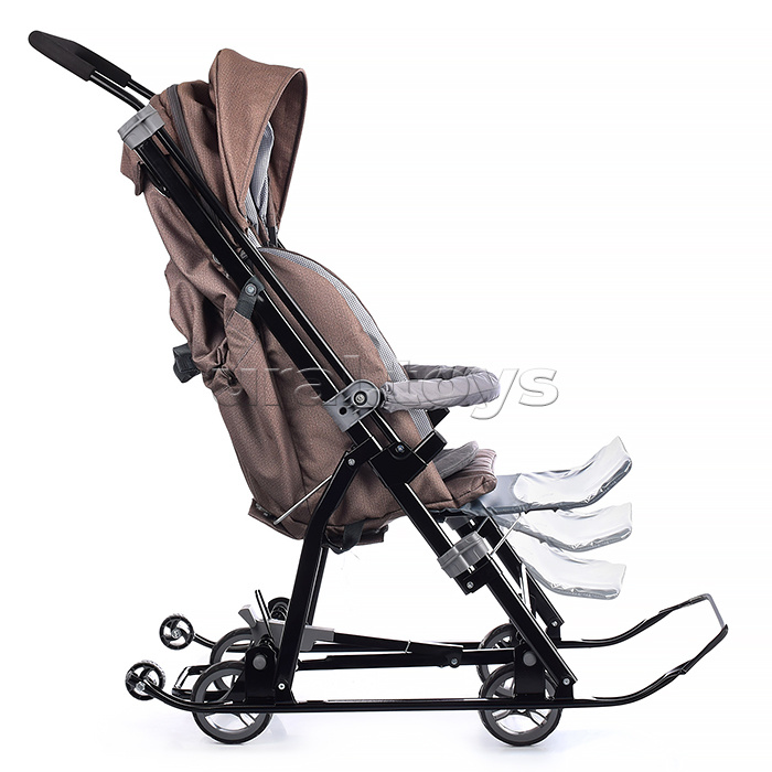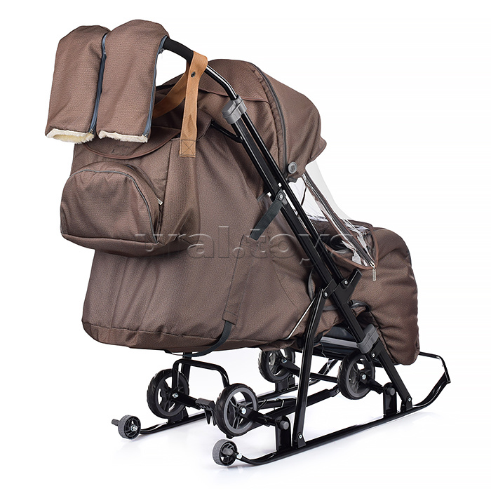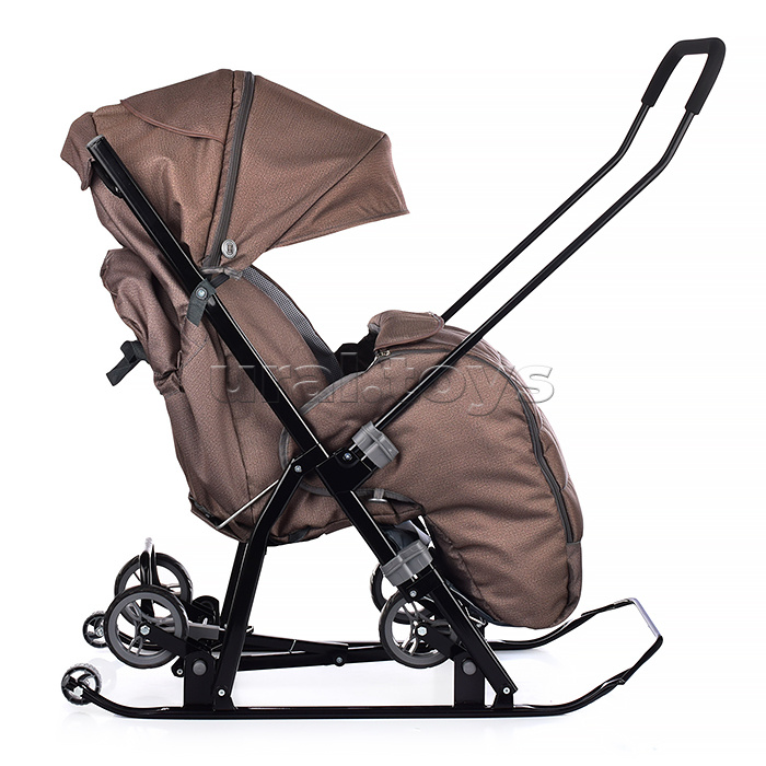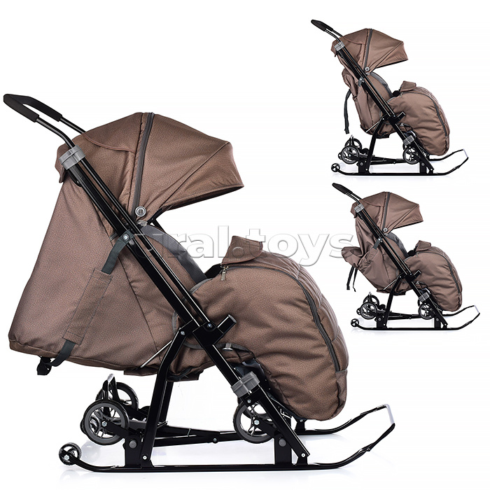 Код: 368146 Страна производитель: Россия Размеры упаковки: 110 x 45 x 25 см Количество в коробке: 1 Санки-коляска Galaxy Kids-3-2С на больших колесах - складные санки-коляска с 4 прорезиненными колесами и очень надежным педальным механизмом. Для наилучшего передвижения по асфальтированной поверхности на санках-колясках предусмотрены сверх проходимые прорезиненные колеса на педальном механизме. Достаточно нажать на него ногой и переставить санки на колеса. Эксклюзивная покраска рамы краской пр-во Германия, которая блокирует ржавчину и коррозию металла в течении срока использования. Перекидная ручка-толкатель: ребенок может находиться в 2-х положениях: лицом к дороге и лицом к маме. Полностью раскрывающаяся, съемная утепленная попона с боковыми защитными ветровиками закрывает ребенка от ветра. Чехол - с 2 молниями по бокам для удобного открывания с обеих сторон. Вы сможете вытащить ребенка с любой стороны, открыв одну из двух молний. Высокий складной 3-секционный капюшон с увеличенной высотой по спинке позволяет чувствовать себя комфортно малышу в шапке с помпоном. На капюшоне есть смотровое окно для наблюдения за ребенком. Завышенная спинка для большего пространства над головой малыша. Спинка опускается до горизонтального положения. Износостойкая, бархатистая ткань, приятная на ощупь, которую часто применяют в автомобильном тюнинге. Подножка для ног с регулируемым углом наклона, включая горизонтальное, позволяющее ребенку в положении лежа комфортно вытягивать ножки. Водоотталкивающая не продуваемая ткань Оксфорд с тефлоновой пропиткой- противогрязевая защита. Легко моется и стирается. В комплекте вместительная сумка для мамы, очень стильная и созданная с любовью: внутри- множество карманов. В комплекте - рукавицы для рук с мехом на стальных кнопках. На капюшоне - съемный дождевик на молнии из ветрозащитной прозрачной пленки. Санки предназначены для перевозки детей от 8 месяцев. В сложенном виде санки компактны и удобны для хранения и провоза в общественном транспорте. Маленькие колесики сзади на полозьях- для удобной транспортировки. Внутри – съемный меховой матрасик с 5-ти точечными ремнями безопасности. Обработка - светоотражающий кант. Рама - высокопрочный облегченный стальной каркас. Сплющенные полозья 30 мм будут легко скользить по любым дорогам города. Широкое посадочное место 41 см. Сиденье обтянуто искусственной замшей - Алькантара. Размеры в разложенном виде: 109 х 44.5 х 106 см. Материал: металл, текстиль, пластик. Максимальная нагрузка: 25 кг. Минимальный возраст ребенка: 8 месяцев Максимальный возраст ребенка: до 4 лет. Соответствует требованиям безопасности продукции. Комментарии к товару