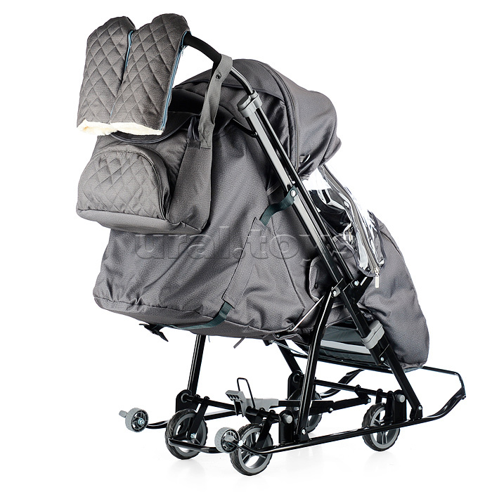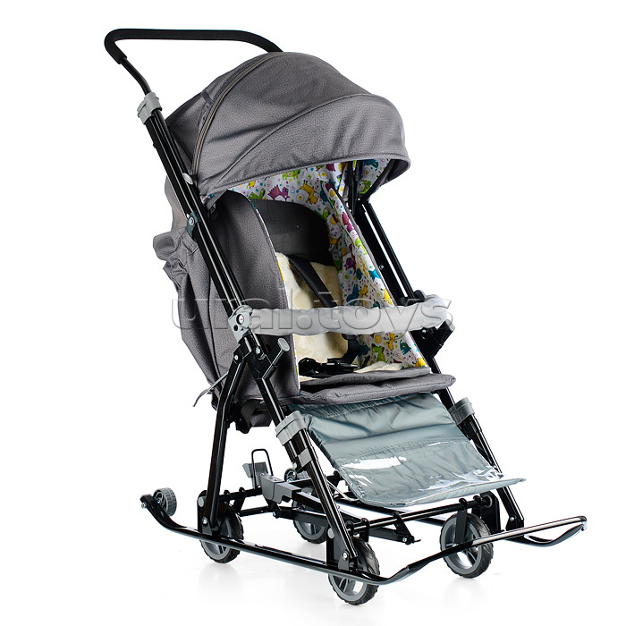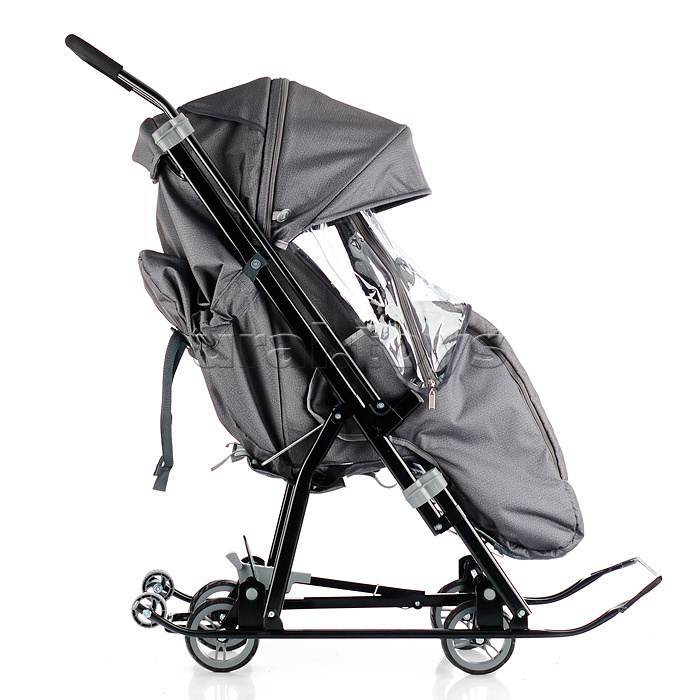 Размер в разложенном виде 1090х445х1060 мм Плоские полозья 40 мм Высокопрочный облегченный стальной каркас Водоотталкивающая колясочная ткань Механизм смены полозьев на колеса (выдвижная колесная база) Бортик безопасности Подножка для ног с регулируемым углом наклона, позволяющая ребенку в положении лежа комфортно вытягивать ножки Перекидная ручка для удобного и безопасного управления санкой-коляской Чехол для ног с 2-мя молниями для удобного открывания с двух сторон Светоотражающий кант - широкое посадочное место 410 мм Смотровое окошко для наблюдения за ребенком Съемный меховой матрасик Рукавицы для рук с мехом Сумка с кармашками для полезных мелочей Пятиточечный ремень безопасности Колеса на полозьях для удобной транспортировки