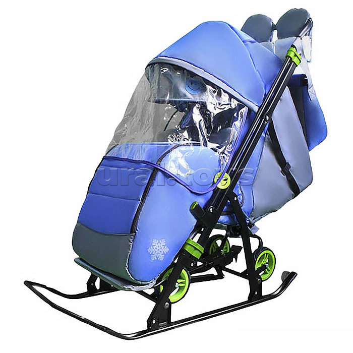 • ВНИМАНИЕ! Уцененный товар обмену и возврату не подлежит. • Комплектация: санки-коляска, сумка, рукавички с отделкой мехом, светоотражающий брелок, ветрозащитное стекло, матрасик с отделкой мехом, паспорт и руководство по эксплуатации, упаковка (пакет). Особенности: • Крепкая сварная конструкция из стальных труб. • Каркас складной, покрыт порошковой эмалью, устойчивой к низким температурам. • Механизм смены полозьев на колеса (выдвижная колесная база). • Колеса с мягкими шинами из EVA, диаметр колес - 12 см., расстояние между колесами 22 см. • Малые колёса на полозьях для перемещения по твёрдому покрытию. • Для удобства эксплуатации санки оснащены перекидной ручкой с прорезиненной накладкой. • В комплекте сумка под ручную кладь и две рукавицы на молнии. • Мягкий чехол из ткани Оксфорд с двумя молниями по бокам для удобного открывания с обеих сторон. • Складной 3-секционный козырёк с увеличенной высотой по спинке. • Смотровое окно на козырьке выполнено из сетки и имеет защитный клапан на липучке. • Ветрозащитное стекло выполнено из прозрачной силиконовой плёнки, крепится к козырьку с помощью молнии. • Спинка сиденья регулируется до положения "лёжа" с помощью фиксатора регулировочного ремня. • Подножка с регулируемым углом наклона. • Съёмный меховой матрасик (размер: 38х70 см.). • Пятиточечный ремень безопасности. • Светоотражающий кант. • Длина санок: 107 см. • Ширина по полозьям: 40 см. • Ширина колёс: 27.5 см. • Размер полозьев: 3х1.5 см. (овал). • Высота ручки (на полозьях/на колёсах): 99 см./106 см. • Глубина сиденья: 28 см. • Ширина по сиденью: 31 см. • Высота спинки: 46 см. • Длина спального места: 90 см. • Размеры ветрозащитного стекла: 75х35 см. • Размеры сумки: 35х25х13 см. • Размеры рукавицы: 28х18 см. • Масса нетто: 8.8 кг. • Грузоподъёмность не более 25 кг. • Для перевозки детей от 1 года до 3-х лет.