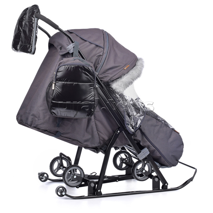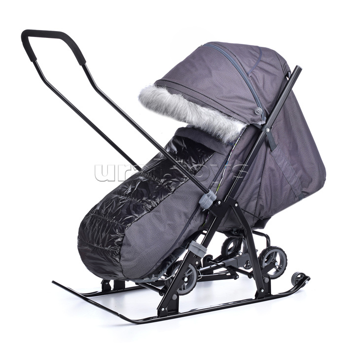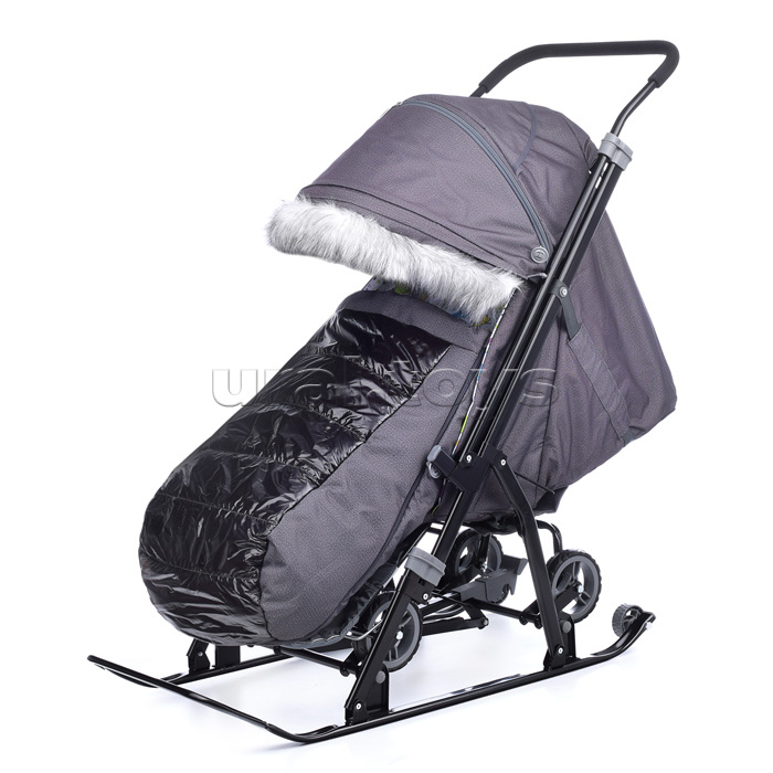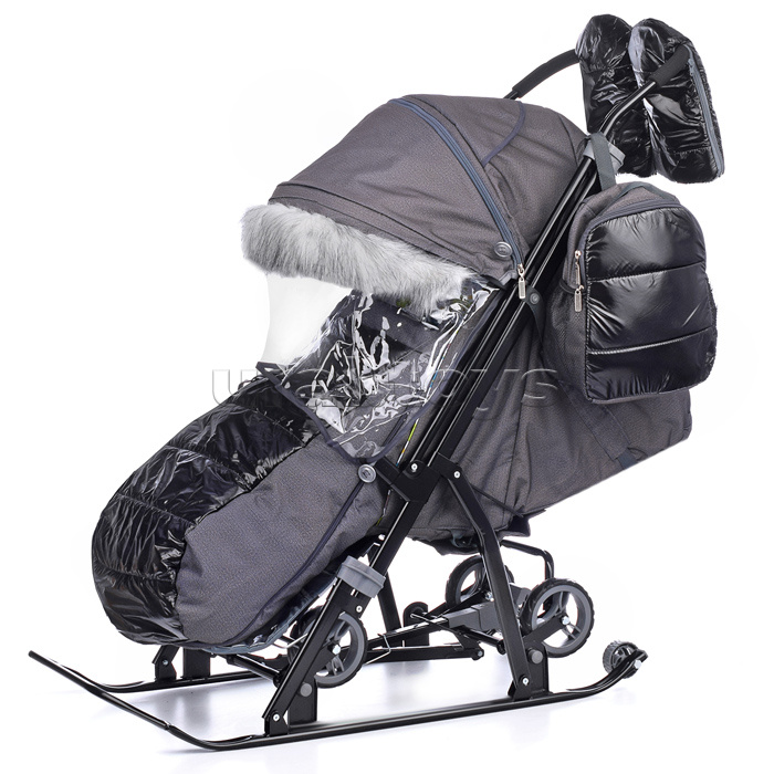 Комплектность: коляска, рюкзак, рукавички, меховой матрасик, бортик безопасности, ветрозащитное стекло, паспорт и руководство по эксплуатации. Особенности: • Крепкая сварная конструкция из стальных труб. • Каркас покрыт порошковой эмалью, устойчивой к низким температурам. • Механизм смены полозьев на колеса (выдвижная колесная база). • Колеса с мягкими шинами из EVA. Диаметр колес - 12.7 см (5"). • Малые колеса (d=6 cм.) на полозьях для удобной транспортировки по твёрдому покрытию. • Для удобства эксплуатации санки оснащены перекидной ручкой. • Мягкий утеплённый чехол из ткани Оксфорд, две молнии по бокам для удобного открывания с обеих сторон. • Положение спинки (до горизонтального) регулируется с помощью ремня. • Ремень безопасности - трехточечный. • Съёмный меховой матрасик (размер: 33х68 см.). • Бортик безопасности (съёмный). • Подножку можно установить в горизонтальное положение. • На капюшоне есть смотровое окно из сетки с защитным клапаном. • Ветрозащитное стекло из плотной прозрачной плёнки с двумя молниями по бокам; крепится к капюшону с помощью молнии. • В комплекте рюкзак под ручную кладь и две рукавицы с боковыми молниями. • Длина санок: 108 см. • Ширина по полозьям: 44 см. • Ширина по колёсам (передние/задние): 31 см./27.5 см. • Высота с ручкой (на полозьях/на колёсах): 101 см./108 см. • Размер полозьев: овал 3х1.5 см. • Ширина сиденья: 31 см. • Глубина сиденья: 27 см. • Высота спинки: 44 см. • Длина спального места: 90 см. • Размеры ветрозащитного стекла: 70х47 см. • Размеры рюкзака: 23х10х30 см. • Размеры рукавицы: 18х28 см. • Масса нетто: 9.5 кг. • Для перевозки детей от 1 года до 3-х лет (не более 25 кг.).