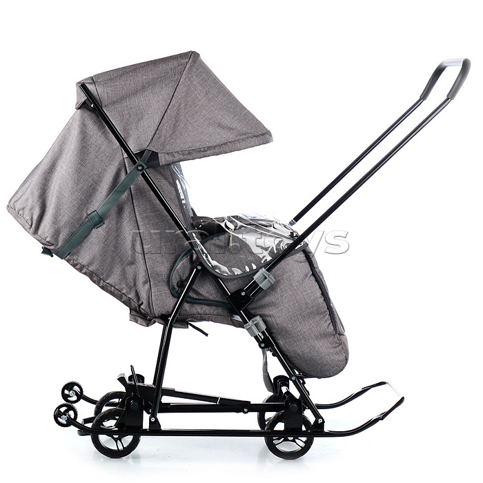 Код: 368140 Штрихкод: 4680005048076 Страна производитель: Россия Размеры упаковки: 108 x 49 x 30 см Количество в коробке: 1 Комплектность: коляска, ветрозащитное стекло, паспорт и руководство по эксплуатации, упаковка (полиэтиленовый пакет). Особенности: • высокопрочный облегченный стальной каркас; • для удобства эксплуатации санки оснащены перекидной ручкой с прорезиненной накладкой; • плоские полозья 30х15 мм.; • механизм смены полозьев на колеса (выдвижная колесная база); • колёса (127 мм.) с мягкими шинами из ЭВА; • пластиковые колеса (6 мм.) на полозьях для удобной транспортировки по твёрдому покрытию; • складной двухсекционный козырек (без смотрового окошка); • ветрозащитное стекло (750х320 мм.) на молнии; • 2 положения регулировки спинки (сидя/полулёжа) с помощью фиксатора регулировочного ремня; • съёмный утеплённный чехол для ног с 2-мя молниями по бокам; • двухточечный ремень безопасности; • модель без матрасика; • складная подставка для ног; • эксплуатация при температуре до -25 градусов С; • максимальная нагрузка: 25 кг. Габаритные размеры: - длина в рабочем положении - 1040 мм - ширина по колёсам - 275 мм - ширина по полозьям - 400 мм - высота с ручкой на полозьях - 990 мм - высота с ручкой на колёсах - 1090 мм - высота до сиденья - 400 мм (на колёсах)/340 мм (на лыжах) - ширина сиденья - 330 мм - глубина сиденья - 260 мм - высота спинки - 460 мм - вес нетто – 6 кг Материал чехла: ткань (плотный полиэстер) с водоотталкивающей пропиткой, поролон. Внутри сиденья и спинки картонные пластины. Соответствует требованиям безопасности и стандартам качества продукции. Для детей от 1 года до 3-х лет. Комментарии к товару
