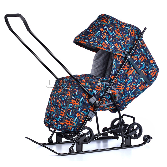 Комплектность: коляска, ветрозащитное стекло, паспорт и руководство по эксплуатации, упаковка (полиэтиленовый пакет). Особенности: • высокопрочный облегченный стальной каркас; • для удобства эксплуатации санки оснащены перекидной ручкой с прорезиненной накладкой; • плоские полозья 30х15 мм.; • механизм смены полозьев на колеса (выдвижная колесная база); • колёса (127 мм.) с мягкими шинами из ЭВА; • пластиковые колеса (6 мм.) на полозьях для удобной транспортировки по твёрдому покрытию; • складной двухсекционный козырек (без смотрового окошка); • ветрозащитное стекло (750х320 мм.) на молнии; • 2 положения регулировки спинки (сидя/полулёжа) с помощью фиксатора регулировочного ремня; • съёмный утеплённный чехол для ног с 2-мя молниями по бокам; • двухточечный ремень безопасности; • модель без матрасика; • складная подставка для ног; • эксплуатация при температуре до -25 градусов С; • максимальная нагрузка: 25 кг. Габаритные размеры: - длина в рабочем положении - 1040 мм - ширина по колёсам - 275 мм - ширина по полозьям - 400 мм - высота с ручкой на полозьях - 990 мм - высота с ручкой на колёсах - 1090 мм - высота до сиденья - 400 мм (на колёсах)/340 мм (на лыжах) - ширина сиденья - 330 мм - глубина сиденья - 260 мм - высота спинки - 460 мм - вес нетто – 6 кг Материал чехла: ткань (плотный полиэстер) с водоотталкивающей пропиткой, поролон. Внутри сиденья и спинки картонные пластины. Соответствует требованиям безопасности и стандартам качества продукции. Для детей от 1 года до 3-х лет.