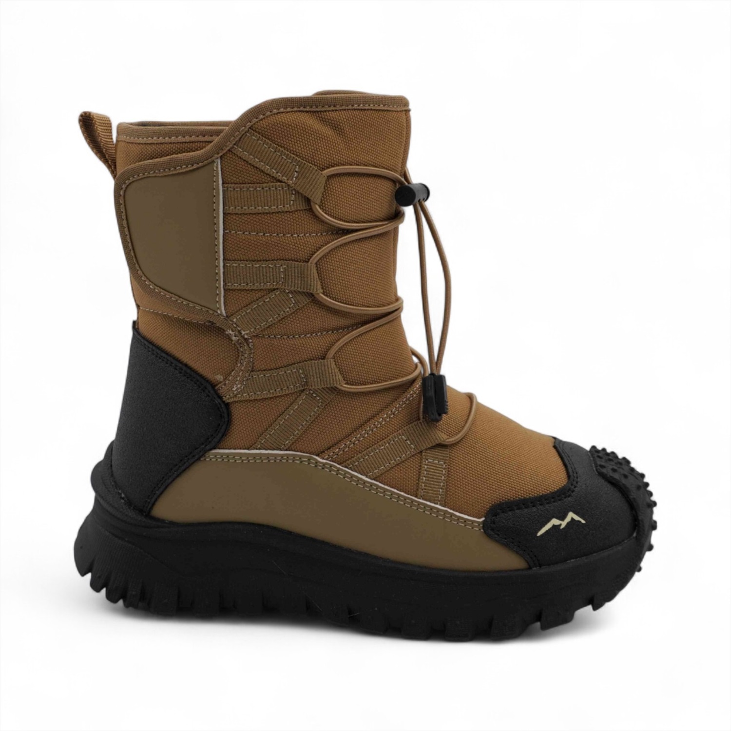 Материал: Верх обуви выполнен из непромокаемого текстиля, что обеспечивает надежную защиту от снега и влаги. Вставки из эко-кожи дополнительно защищают мысок и пятку сапожек от механических повреждений. Подкладка и стелька из искусственного меха, которая обладает отличными теплоизоляционными свойствами.