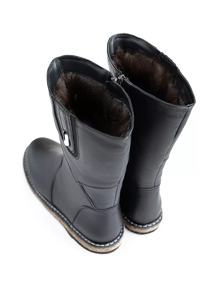 Наружняя сторона голенища – натуральная кожа Внутренняя часть – натуральная овчина Союзка – натуральная кожа Размеры: с 36 по 41 Виды подошвы: войлочная подошва Наличии молнии: есть Страна производитель: Россия