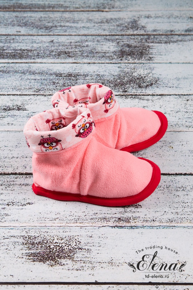 Цвет Номенклатуры: розовый Сапожки домашние из флиса. Подкладка из х/б полотна, низ окантован бейкой из полотна с набивным рисунком.