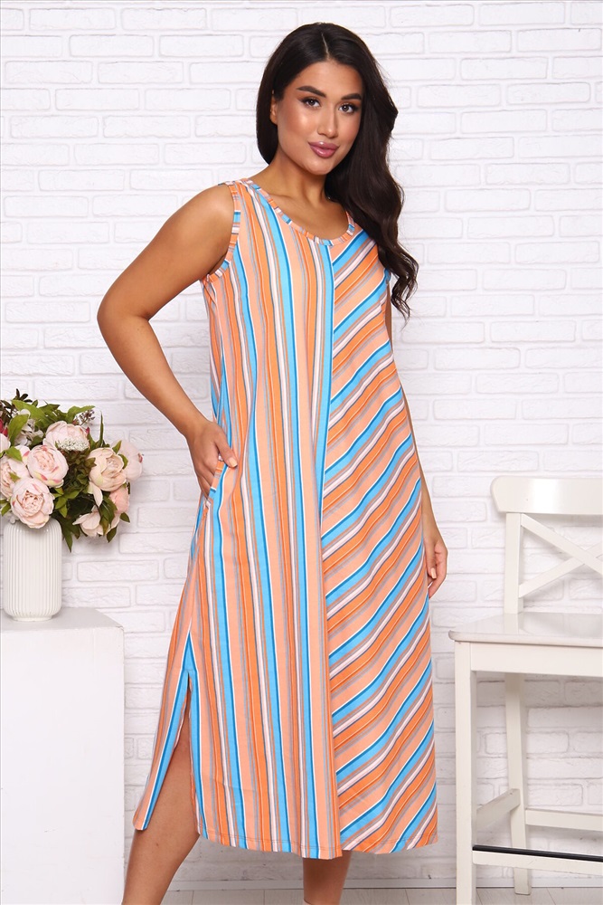 Производитель: НАТАЛИ ID товара: 1181234 Состав: 100% Хлопок Сезон: Весна/Лето Длина: Миди Фасон: Свободный Рукав: Без рукавов Вырез горловины: Округлый Рисунок: Полоски Тип карманов: В шве Декоративные элементы: Разрезы Основная ткань: Хлопок Стиль: повседневный Вид ткани: Кулирка Страна бренда: Россия Страна производства: Россия