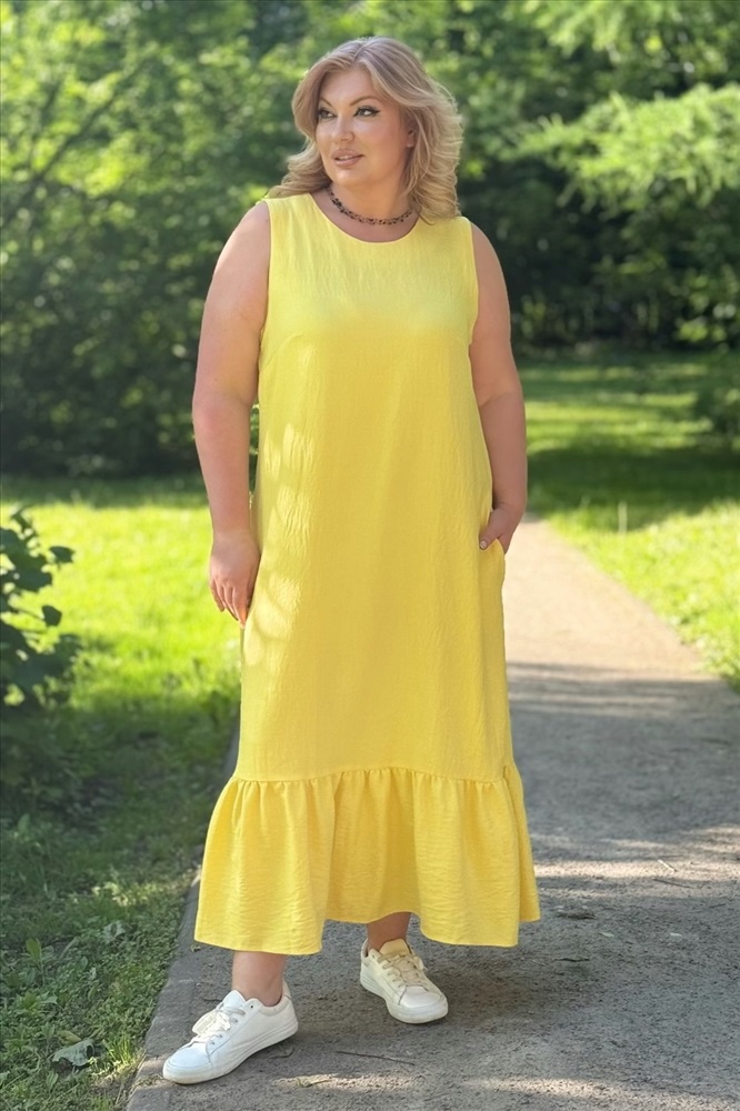 Романтичный сарафан-макси из мягкого материала имеет круглый вырез. Вытачки на груди обеспечивают оптимальную посадку по фигуре. Оригинальный волан по низу добавляет женственности и искусно обыгрывает силуэт. Однотонная расцветка освежает образ и добавляет нежности. Свободный крой не сковывает движений и скрывает несовершенства фигуры. Вшивные карманы по бокам добавляют практичности. Модель приятна телу, хорошо сидит и красиво обыгрывает фигуру. Сарафан незаменим в жаркую погоду, когда хочется носить максимально легкую и открытую одежду.