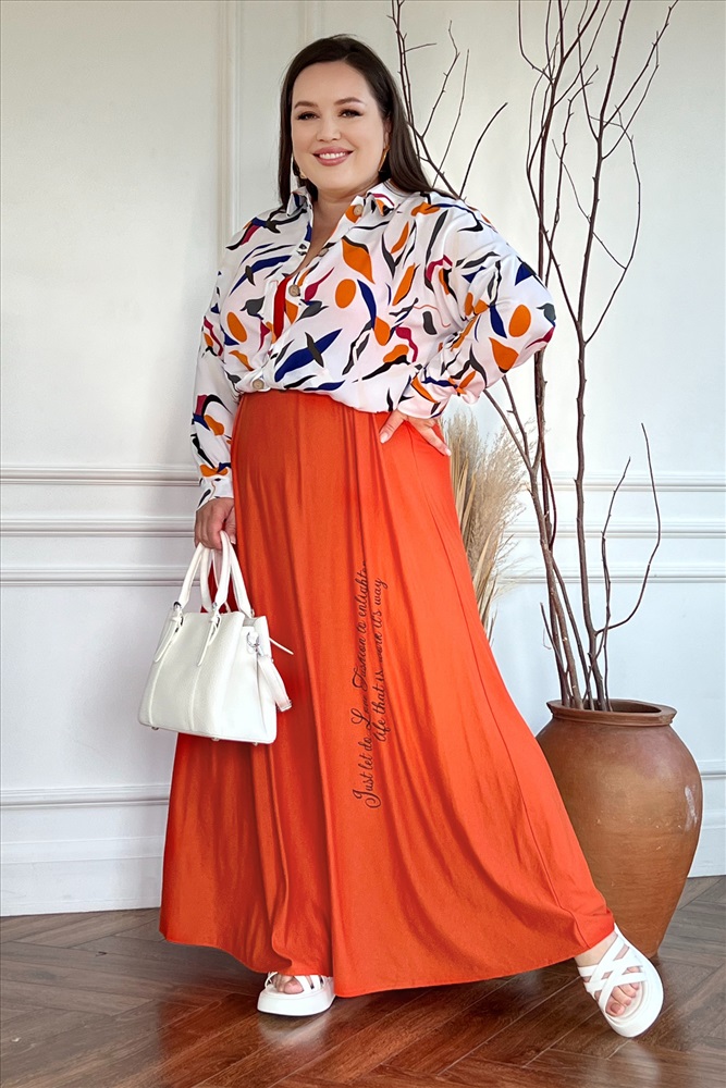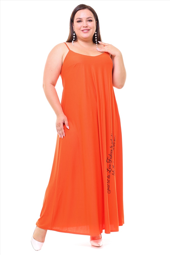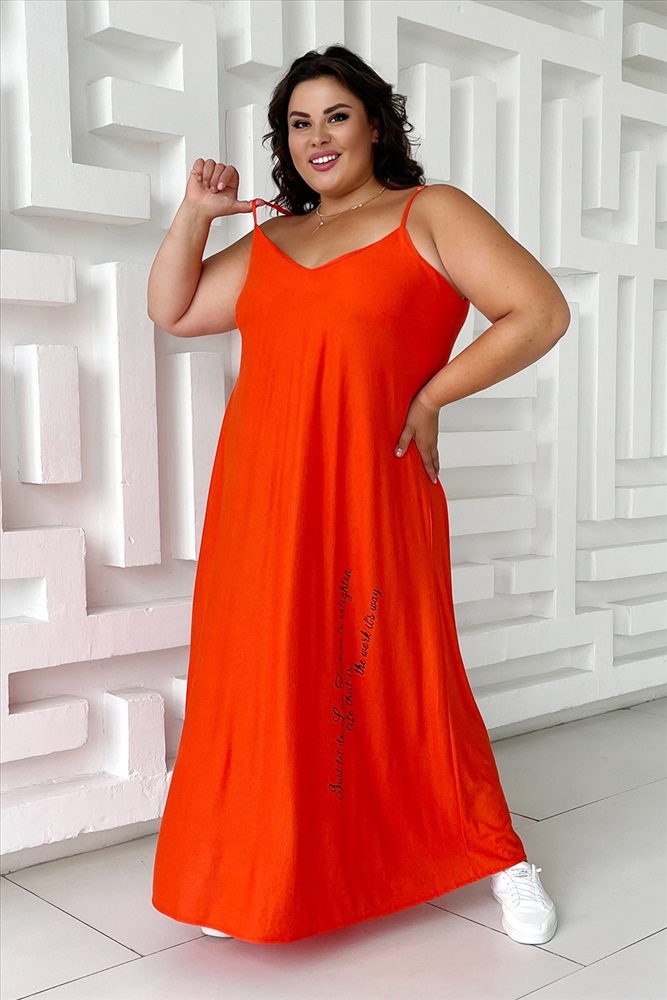 Сарафан длинный однотонный с надписью оранжевый