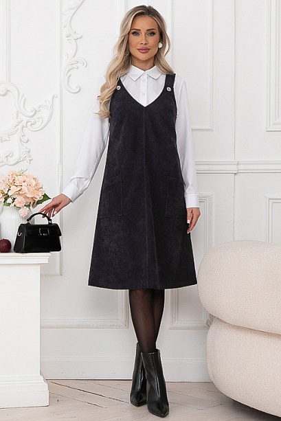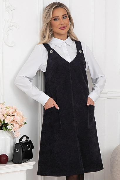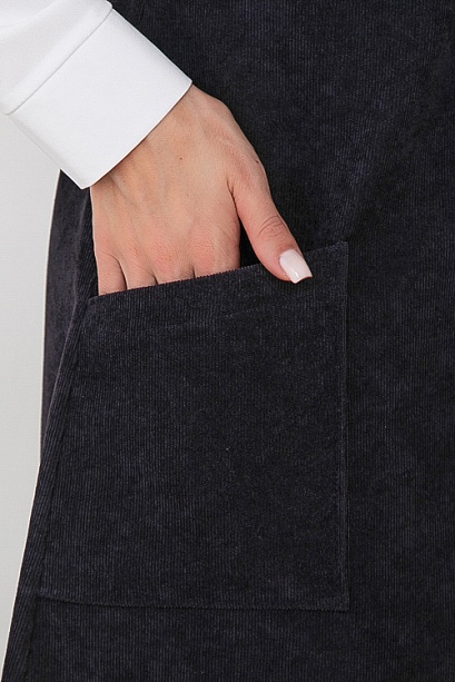 * Сарафан трапецевидного силуэта из вельвета с функциональными накладными карманами по переду. Цвет: т.синий.