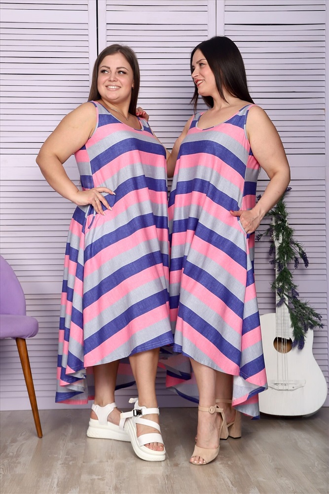 ID товара: 878770 Состав: Хлопок 100% Сезон: Весна/Лето Длина: Миди Фасон: Свободный крой Рукав: без рукавов Вырез горловины: Округлый Основная ткань: Кулирка Стиль: Повседневный Страна бренда: Россия Страна производства: Россия Сарафан женский свободного силуэта, два боковых кармана, на спинке перемычки. Комментарии к товару