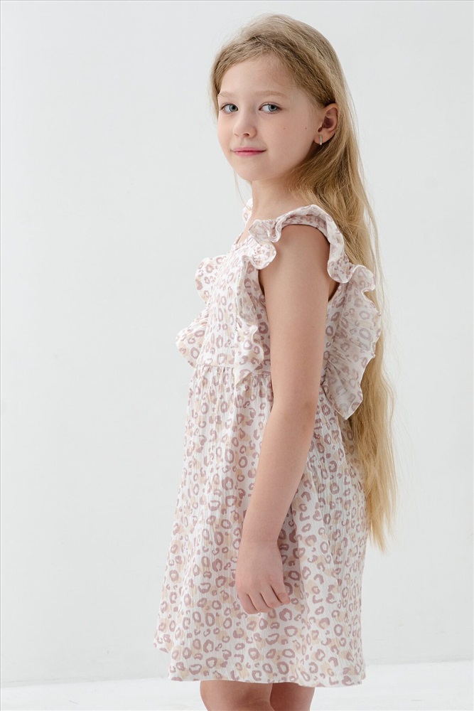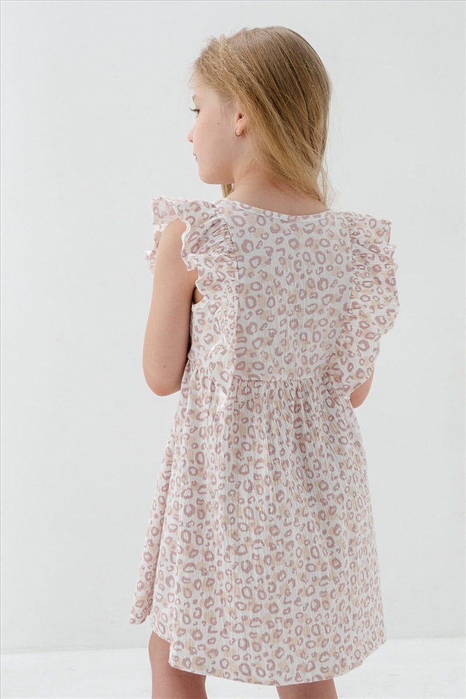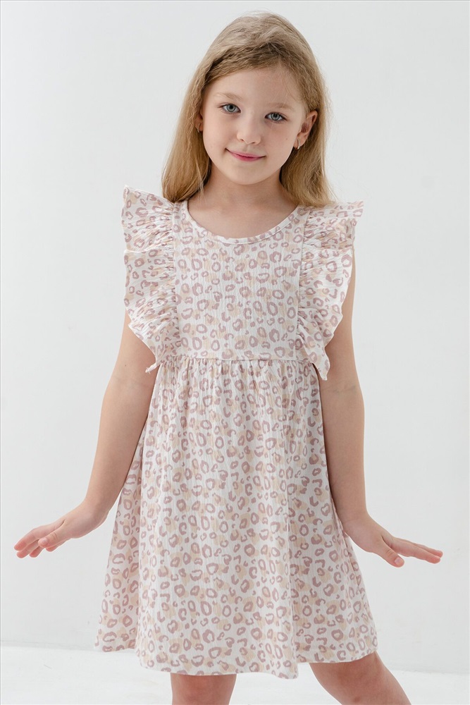 ID товара: 1114860 Состав: 88% Хлопок, 8% Полиэстер, 4% Лайкра Сезон: Весна/Лето Длина: До колена Фасон: Расклешенное Рукав: Крылышки Вырез горловины: Округлый Рисунок: леопардовый Декоративные элементы: Принт Основная ткань: Хлопок Стиль: повседневный Вид ткани: Кулирка с лайкрой, жатка Страна бренда: Россия Страна производства: Россия Красивое платье сарафан для девочки в садик с крылышками выполнено из хлопкового трикотажного муслина с добавлением лайкры, что придаёт сарафанчику мягкость, комфорт и долговечность. Подарите идеальное детское платье своей дочери подростку для отдыха на море или на каждый день. Комментарии к товару