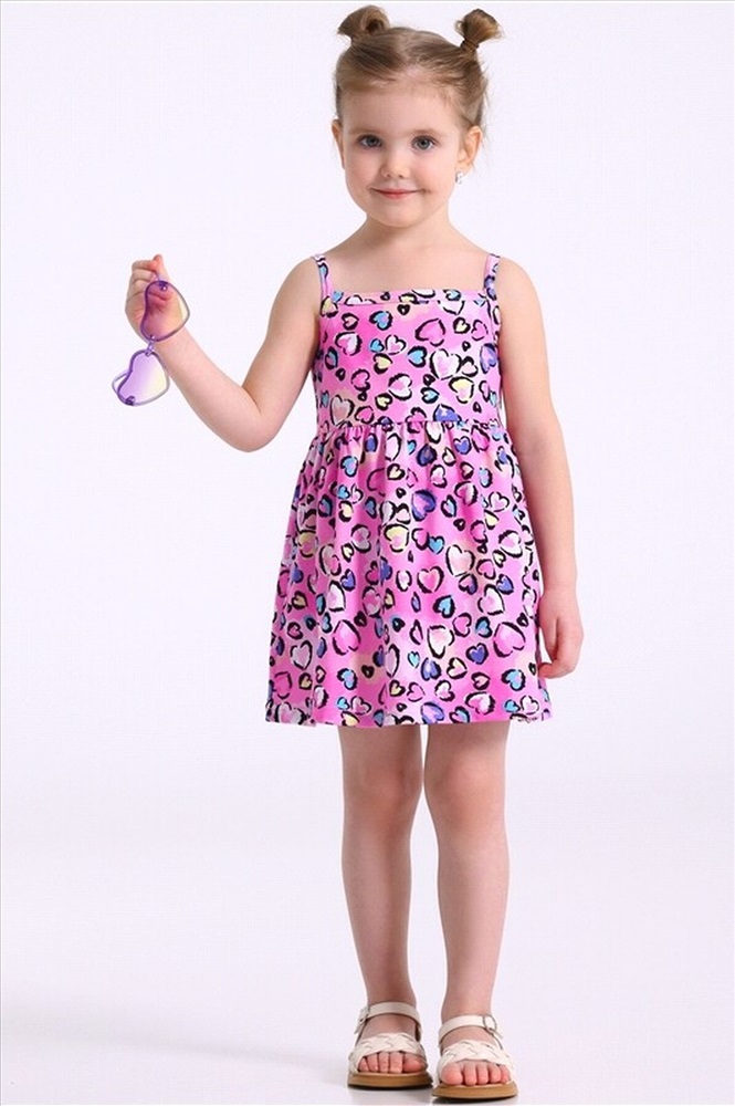 Сарафан для девочки выполнен из кулира - легкого хлопкового полотна. Изделие на тонких бретелях и с расклешённой юбочкой. Отличный выбор для жаркого летнего дня! Уход: только машинная стирка (руками не стирать!) при температуре 40 градусов, без предварительного замачивания.