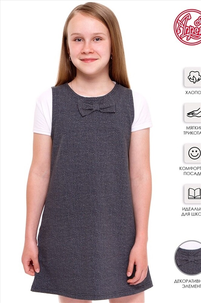 ID товара: 807642 Акции: -16%, до 01.12.2025 Состав: Хлопок 95%, Лайкра 5% Сезон: Осень/Зима Длина: Средняя Фасон: Прямой Рукав: Без рукава Вырез горловины: Круглый Рисунок: Гусиная лапка Декоративные элементы: Бант Основная ткань: Хлопок Стиль: Повседневный Страна бренда: Россия Страна производства: Россия Сарафан для девочки выполнен из футера - плотного хлопкового полотна с лайкрой. Изделие без рукавов, украшено аккуратным бантиком. Отличный вариант для школьницы на каждый день! Уход: только машинная стирка (руками не стирать!) при температуре 40 градусов, без предварительного замачивания. Тип полотна - футер Комментарии к товару