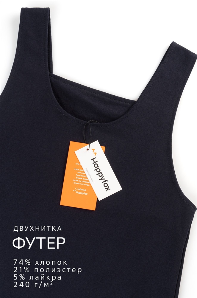 Нарядное платье выполнено из приятного к телу хлопка. Плотная трикотажная ткань футер делает короткий сарафан идеальным для осенних, весенних и летних дней. Благодаря добавлению полиэстера и лайкры он не вытягивается и сохраняет форму даже после частых стирок.