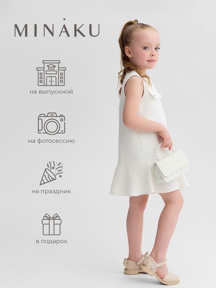 Производитель: MINAKU Габариты: 27 x 20 x 1,5 В боксе: 30 шт Назначение: Повседневная, Новый год Размер: 28 Рост, см: 110 Сезон: Всесезонный, Лето Рекомендации по уходу: Деликатная стирка при 30 °С, Деликатный режим отжима, Не отбеливать Состав ткани: Хлопок, Полиэстер Обхват талии, см: 70.6 Длина изделия по спинке, см: 51 Обхват груди, см: 66.4 Обхват бёдер, см: 75.8 Фиксированная цена: Да Страна: Россия Состав: Полиэстер 80%, хлопок 20% Материалы: полиэстер, хлопок Фасовка: по 1 шт Сертификат: ЕАС Цвет: Белый Для кого: Для девочки Ткань: Букле Вид застёжки: Пуговицы(-а) Тематика: Однотонная Вырез горловины: Круглый Декоративные элементы: Волан Покрой: Прямой Вид бретелей: Широкие